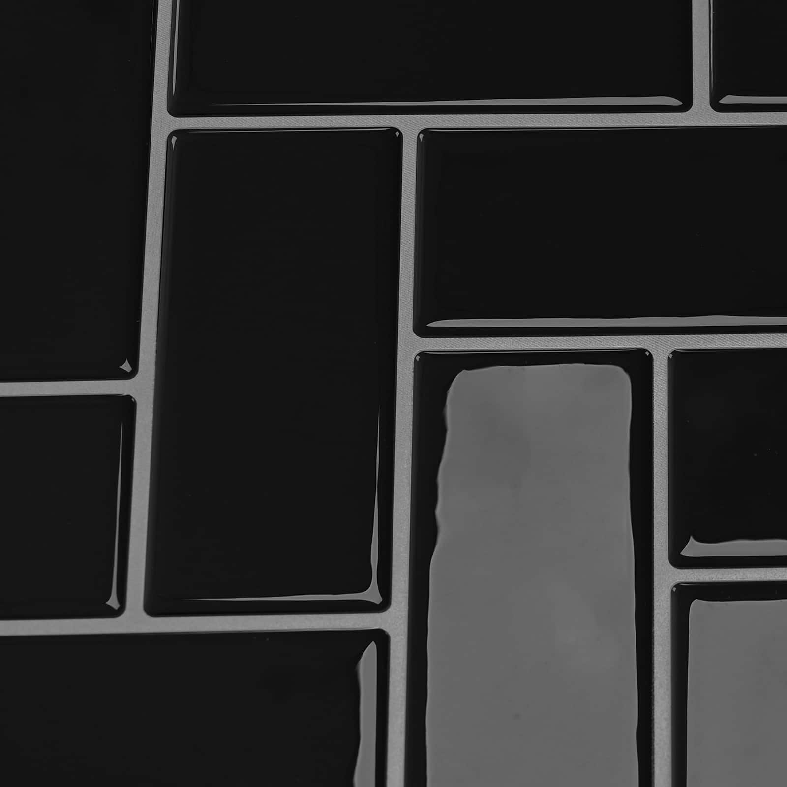 Ploščica ribje kosti 10 pcs Črna 30 x 30 cm Poliuretan in PET