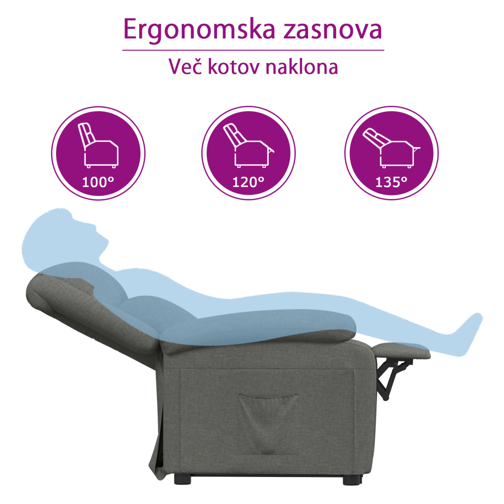 Namestite se in uživajte na tem izjemno udobnem naslanjaču! Funkcija ročnega nagiba: Ležalnik je posebej zasnovan s 3 položaji nagiba, tako da lahko ročno nastavite naslonjalo in oporo za noge glede na vaše udobje.Udobno sedenje: Sedež, naslonjalo za hrbet in široki nasloni za roke so oblečeni v umetno usnje ter zagotavljajo prijeten in topel občutek, da se med sedenjem počutite prijetno. Umetno usnje je zelo trpežen material. Je odporno na madeže, zato ga lahko preprosto očistite z vlažno krpo. Gladka površina mu prav tako daje razkošen videz in lepoto pravega usnja.Trden in stabilen okvir: Okvir iz lesa in kovine zagotavlja trdno strukturo in stabilnost. Ta naslanjač je udoben in trpežen.