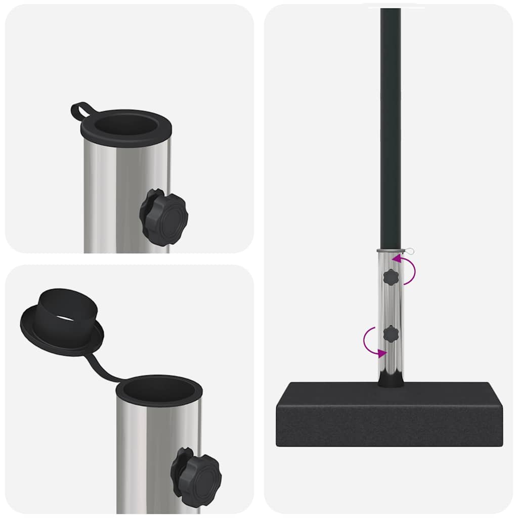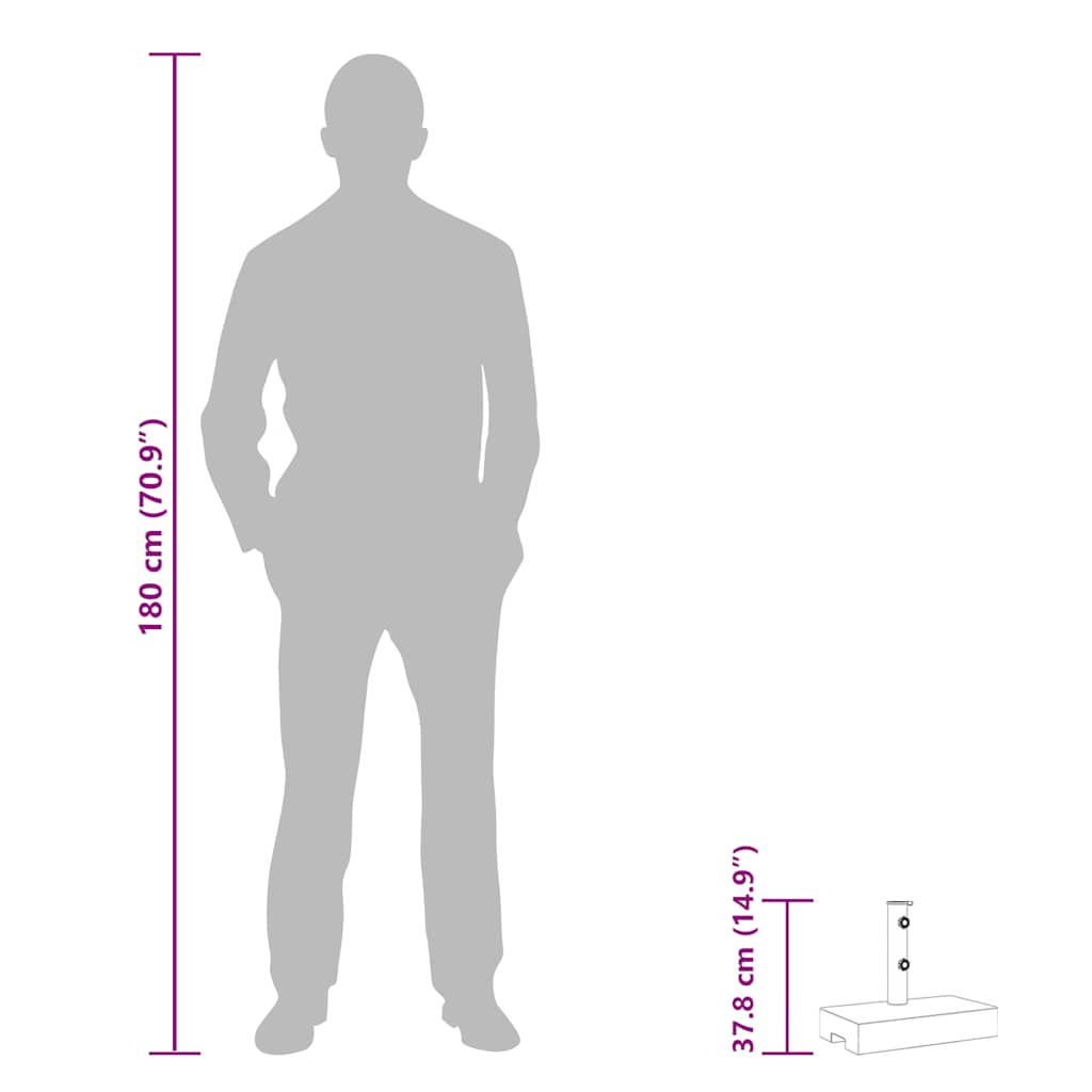 Naš podstavek za senčnik iz trdnega granita zagotavlja močno in stabilno osnovo za vaš senčnik. Preprečil bo, da bi se vaš senčnik podrl zaradi vetra. Ta 25 kg podstavek za senčnik je izdelan iz močnega granita, zato je izjemno stabilen in zagotavlja, da bo vaš senčnik lepo stal tudi v vetru. Podstavek za senčnik ima 2 sornika za namestitev droga na mesto. Priložen je en adapter, zato je podstavek za senčnik primeren za senčnike z drogom premera 38 mm.