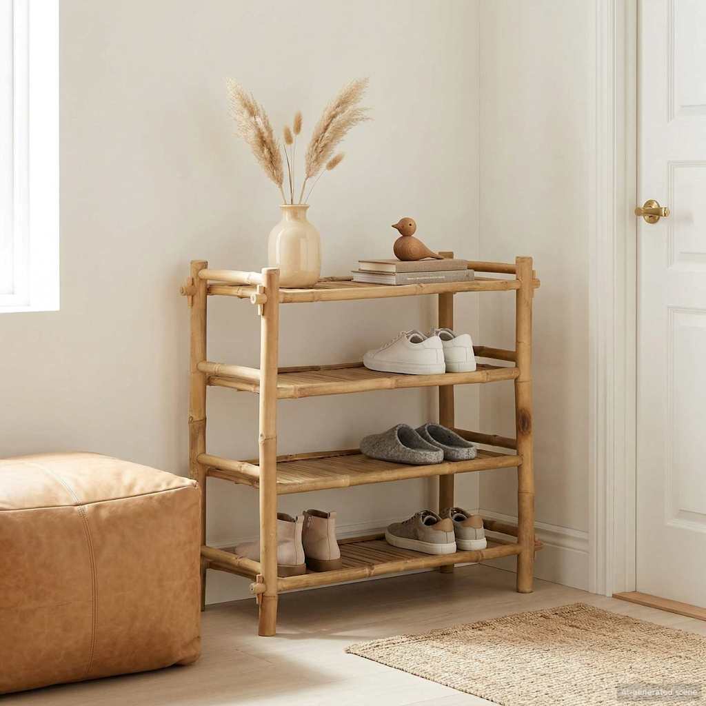 Ta moderna polica za čevlje je popolna rešitev za organizacijo vaše obutve, hkrati pa doda estetsko vrednost vaši dnevni sobi. Narejena iz naravnega bambusa, ta kos ponuja praktičen in stilski način za upravljanje vaše zbirke čevljev. Bambus: Uporabljamo naravni bambus, znan po prijaznosti in trajnosti. Njegova površina daje eleganten, moden videz in se brez težav prilega vsaki sodobni dekoraciji. Pravokotna oblika: Ta polica za čevlje se odlično prilagaja prostorskim potrebam in zagotavlja dovolj prostora za shranjevanje, ne da bi zavzela preveč prostora. Močne noge: Oblika noge nudi stabilno podporo, varuje vaše čevlje. Ta trdna zasnova je primerna za vsakodnevno uporabo v aktivnih domovih. Praktične police: Police so zasnovane za razporeditev več parov čevljev in preprečujejo nered. Enostavno jih organizirajte in dostopajte do njih, kadar jih potrebujete. Samo za notranjo uporabo: Naša polica je zasnovana izključno za notranje prostore, da zagotovi dolgotrajno uporabo. Njena minimalistična zasnova se prijetno ujema z drugimi kosi pohištva.