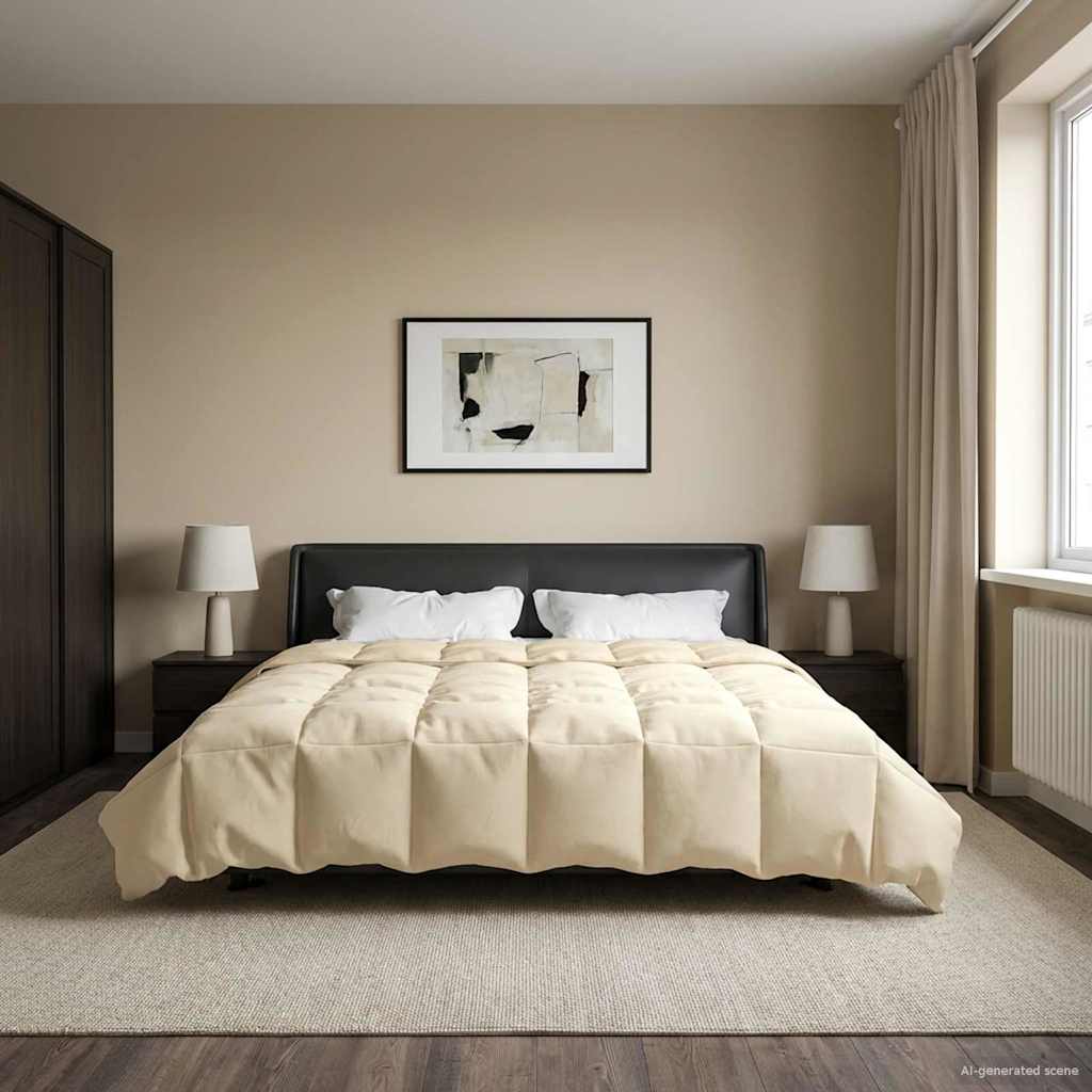 Naša Duvet odeja vam bo spremenila spalnico v udoben kotiček, primeren za vsak letni čas. S sodobnim slogom, čistimi linijami in funkcionalnostjo, je idealna za vsak dekor. Uživajte ob mrzlih zimskih nočeh ali ko potrebujete lahek pokrivač poleti, saj je vsestranska in pri tem še vedno elegantna. Mikrovlaknen material: Odeja je iz 100% poliester mikrovlaken, izbranega za mehkobo in odpornost proti gubam. Nudi udoben občutek ob koži ter deluje sveže po vsakem pranju. Večnamensko polnilo: Z inovativnim vlaknom zagotavlja ravnotežje med toploto in zračnostjo. Ohranja toploto pozimi in prijetno hladi poleti. Kvadratni dizajn: Izstopajoč kvadratni vzorec prinaša slog in teksturo v prostor, obenem pa omogoča enakomerno razporeditev polnila. Dvo-stranska tkanina: Na eni strani mehak žamet, na drugi pa zračna mikrovlakna, kar prinaša udobje obeh svetov. Preprosto vzdrževanje: Pralna v stroju pri hladni vodi z enakimi barvami. Sušenje v sušilcu na nizki temperaturi ali naravno sušenje z rahlim stresanjem ohranja puhastost.