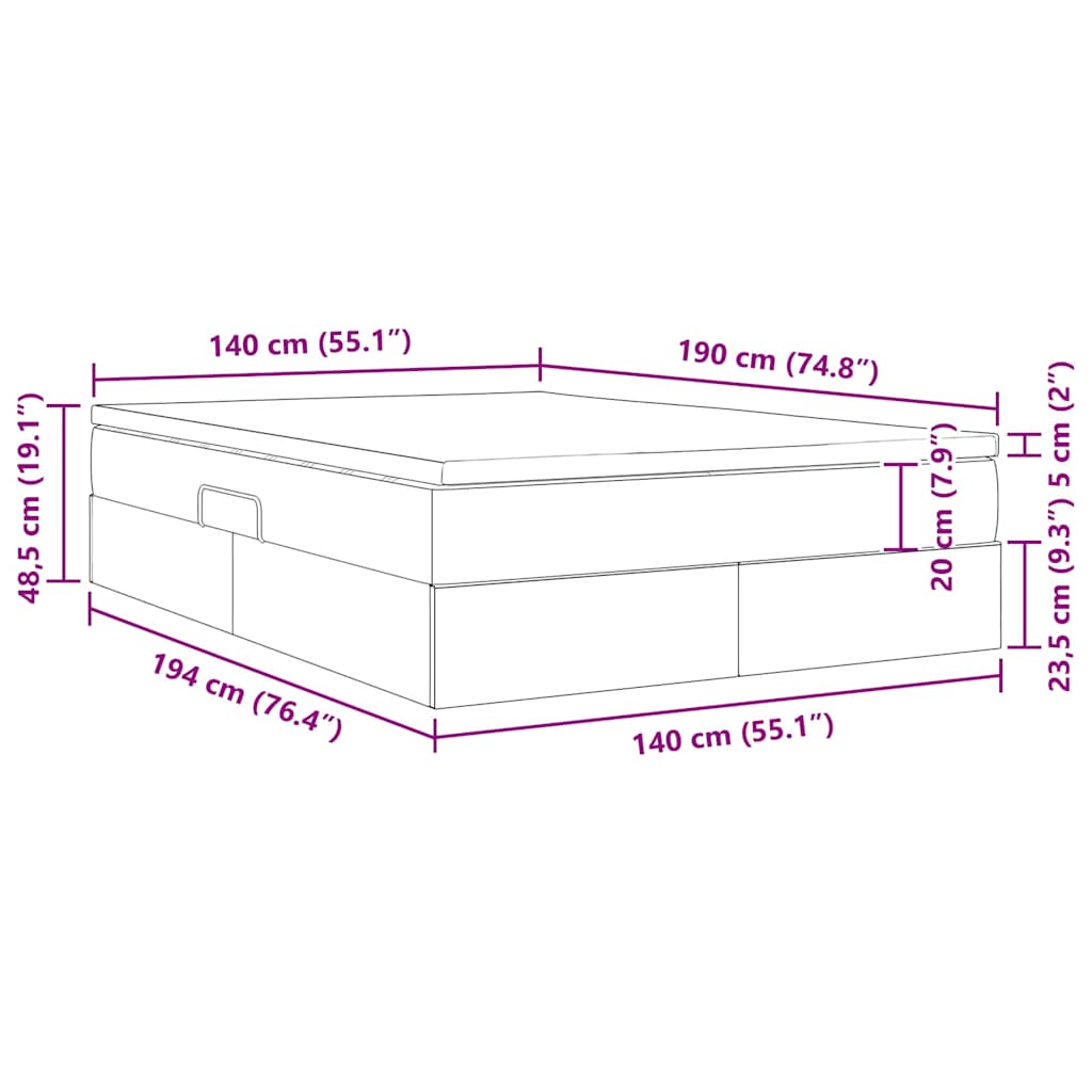 - Velikost vzmetnice: Kratka dvojna (140 cm x 190 cm / 55″ x 75″)