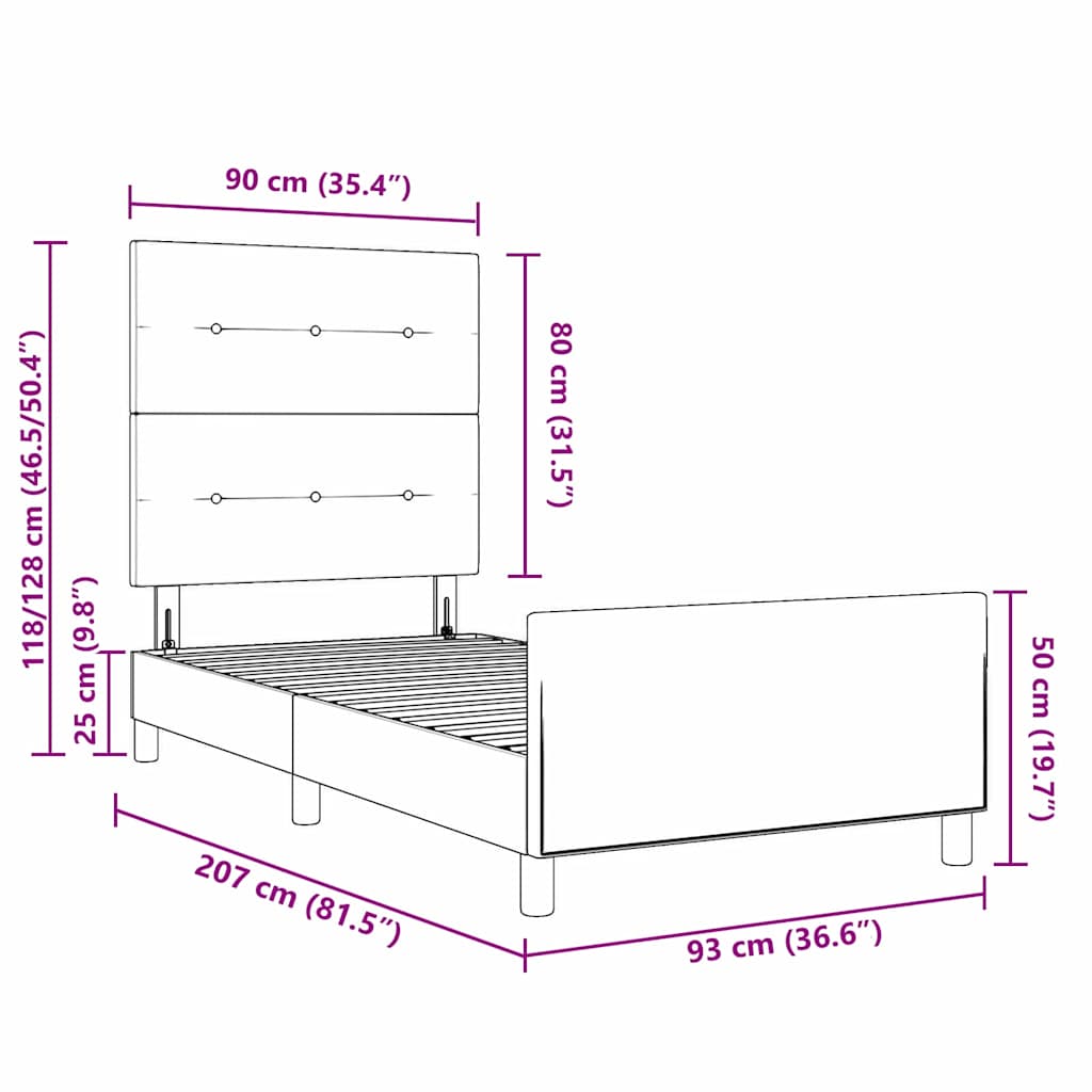 - Velikost vzmetnice: Enoposteljna (90 cm x 200 cm / 35″ x 79″)