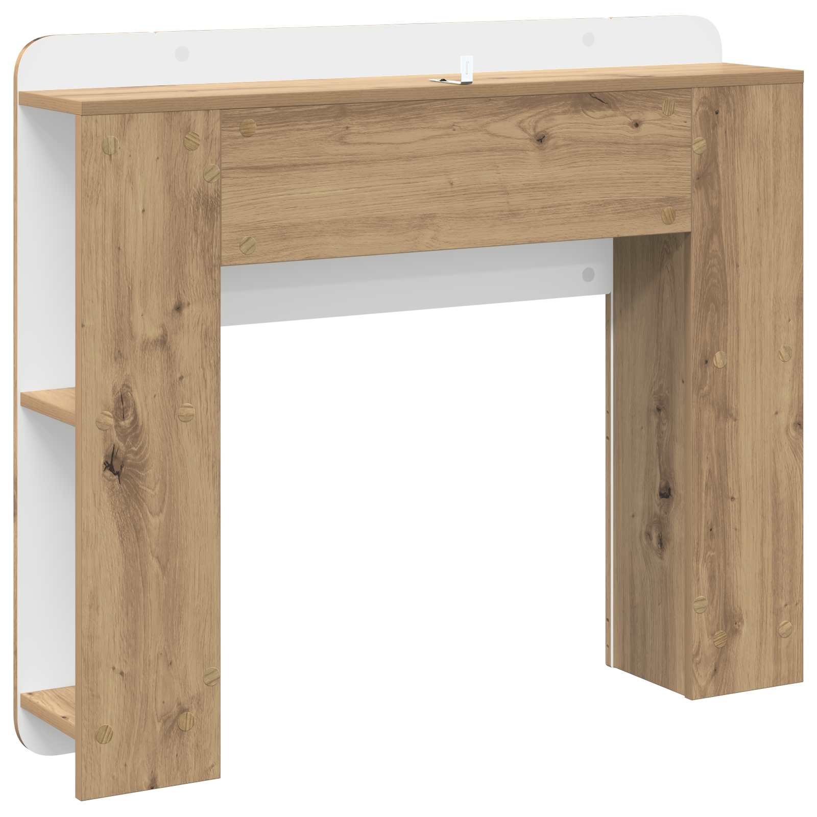 Ta moderni kabinet za vzglavnik dodaja dvojno funkcijo vaši spalnici, saj povezuje elegantnost vzglavnika s praktičnostjo omare. Njegov šik dizajn lepo dopolni sodobno dekoracijo in nudi učinkovito rešitev za shranjevanje, da ohranja prostor organiziran. Vzdržljiva konstrukcija: Izdelan iz inženirskega lesa za stabilnost in odpornost v spalniškem pohištvu. Njegova robustna gradnja zagotavlja dolgo življenjsko dobo in ohranja estetski videz, medtem ko podpira težo dekoracije. Prostorna zmogljivost shranjevanja: Integrirana omara nudi dovolj prostora za knjige, dekor in vsakodnevne potrebščine. Tako izkorišča prostor in zagotavlja lahko dostopnost, ne da bi ga preplavila. Večnamenska uporaba: Ta kos se brez težav podvoji kot omarica, kar je idealno za sodobne nastavitve. Njegova prilagodljivost je boljša v večnamenskih prostorih in podpira dinamičen življenjski slog. Enostavno čiščenje in vzdrževanje: Zasnovan za enostavno vzdrževanje, se očisti z vlažno krpo, kar podaljšuje življenjsko dobo in ohranja površino. Jasna navodila omogočajo enostavno ravnanje tudi za začetnike. Varna namestitev: Z dodatno napravo za pritrditev zagotavlja stabilnost. To je ključno za preprečevanje prevračanja in zaščito lastnine med vsakodnevno uporabo.