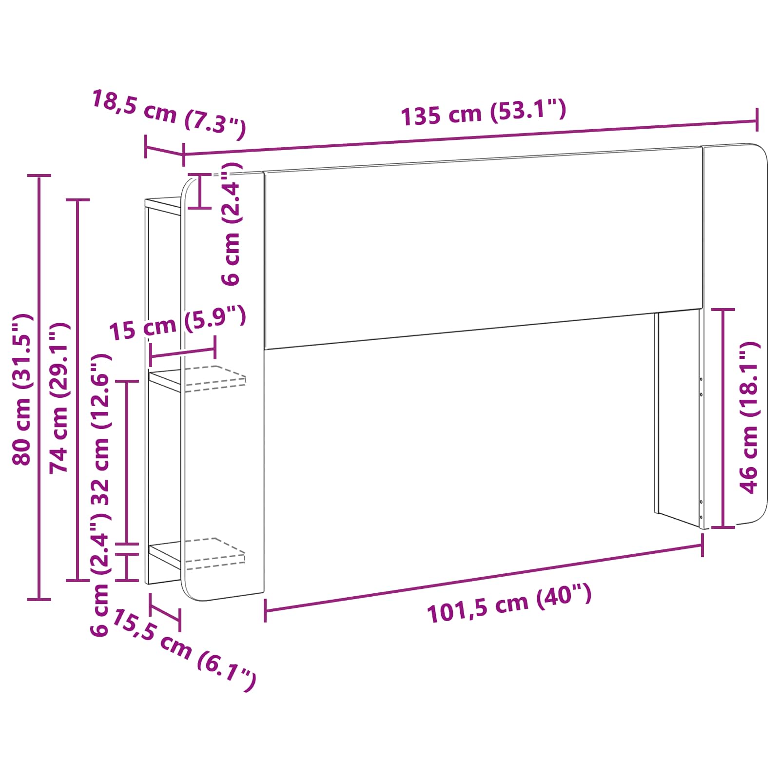 - Splošne dimenzije: 135 x 18,5 x 80 (D x Š x V)