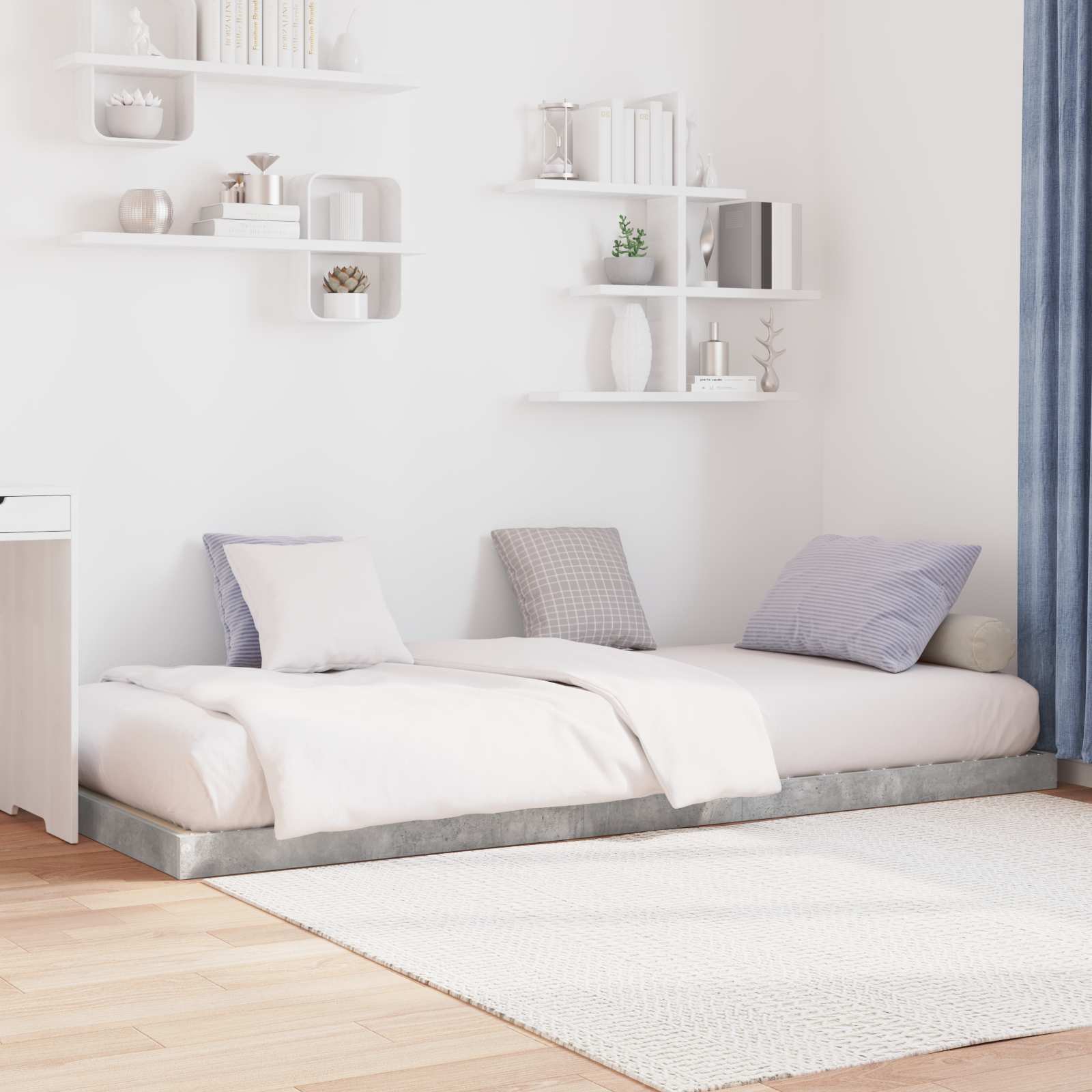 Ta sodoben okvir postelje s talno postavitvijo združuje preprostost in funkcionalnost, kar omogoča enostavno vključitev v katerokoli domačo dekoracijo. Izdelan iz inženirskega lesa, ponuja eleganten videz s čistimi linijami, ki podpirajo minimalistični dizajn. Primeren je za različne vzorce spalnic, saj je idealna rešitev, ki se lahko uporablja pod loft posteljo ali kot samostojen kos. Njegova neopazna oblika povečuje splošno rafiniranost prostora in ponuja široke možnosti za osebne sloge, bodisi sodobne bodisi tradicionalne. Struktura iz inženirskega lesa Ta okvir postelje je izdelan iz trpežnega inženirskega lesa, kar zagotavlja dolgotrajno uporabo in hkrati ohranja eleganten videz. Z izbiro tega materiala dobite odlično kombinacijo trdnosti in lepega izgleda, kar ponuja zanesljivo podporo in moderen dizajn, ki dopolnjuje sodobne notranjosti. Podporna zasnova letvic S pomočjo integriranih letvic ta okvir zagotavlja stalno podporo in zračenje za vzmetnico, kar povečuje udobje in trajnost. Prilagodljivost postavitve Ta okvir je zasnovan tako, da ga lahko postavite pod loft posteljo, kar maksimizira prostor, ne da bi pri tem ogrozili stil ali udobje. Enostavno se prilagaja različnim aranžmajem v spalnici, kar je idealno za majhne stanovanja in prostorne hiše. Minimalistična estetika S svojimi čistimi linijami in prefinjeno eleganco ta okvir postelje povečuje vizualno privlačnost katere koli sobe. Ta minimalistični pristop se lepo prilagodi različnim slogovnim dekoracijam, od ultramoderne do klasične, kar nudi popolno estetsko ravnovesje. Praktična sestava Sestavljanje je hitro in enostavno ter zahteva le preprosta orodja. Podpira široko izbiro vzmetnic in tako ustreza različnim spalnim preferencam ter zagotavlja dolgotrajno zadovoljstvo pri uporabi.