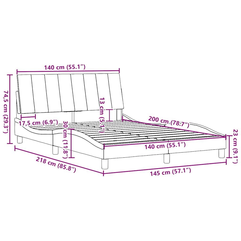 - Primerna velikost vzmetnice: 140 x 200 cm (Š x D) (vzmetnica ni vključena)