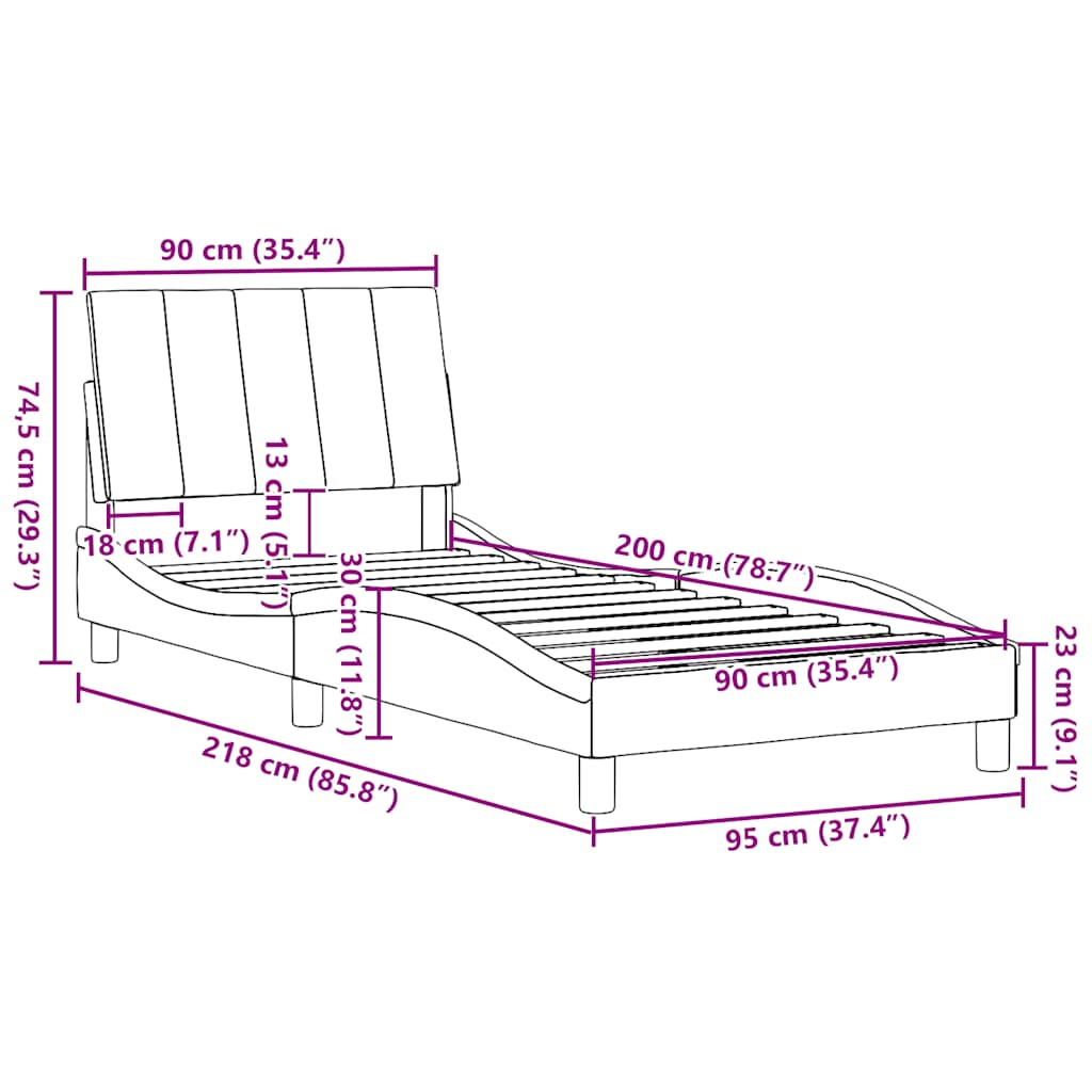 - Primerna velikost vzmetnice: 90 x 200 cm (Š x D) (vzmetnica ni vključena)