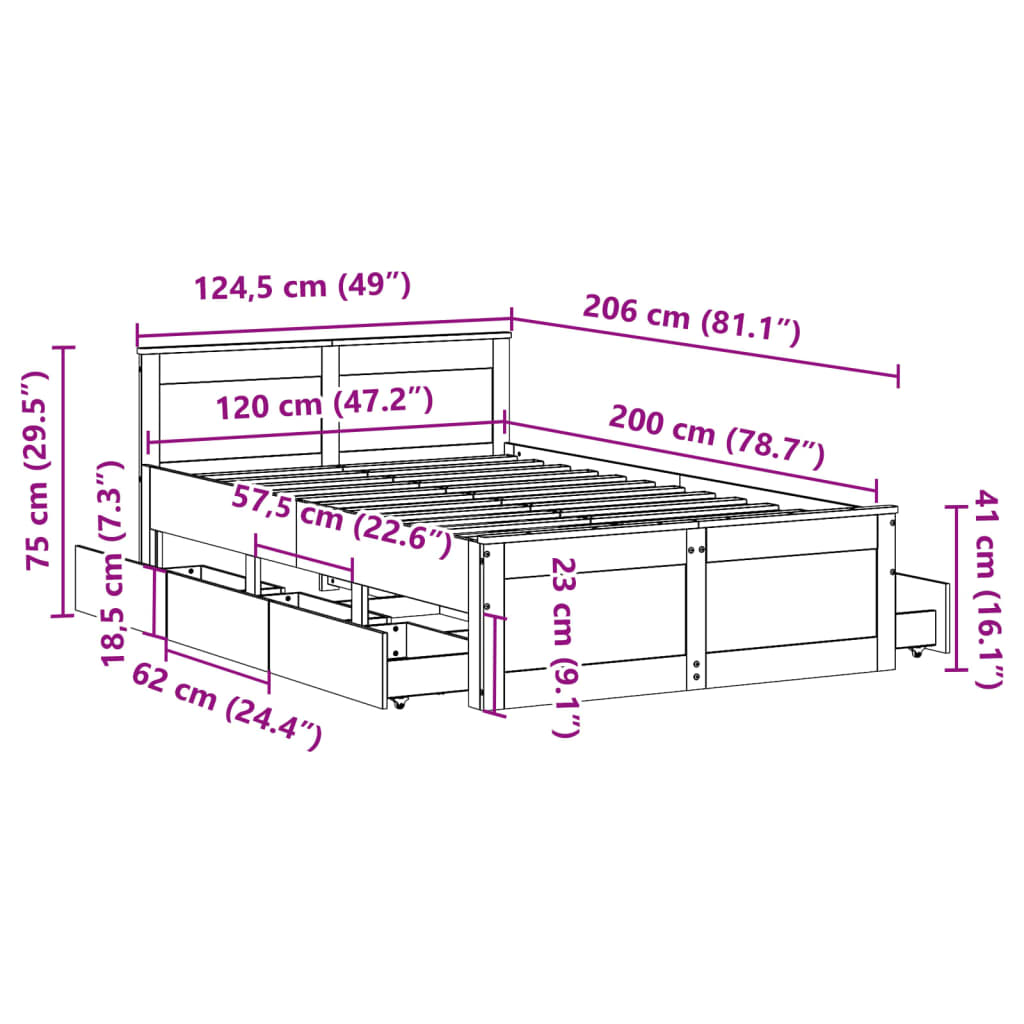 Zagotovite si boljši spanec s tem posteljnim okvirjem! Je prijeten dodatek za vsako spalnico. Stabilen in dolgotrajen okvir: Trdna borovina je znana po svoji trdnosti in trajnosti. Ravni vzorci in značilni vozli prispevajo k njenemu rustikalnemu čaru.Podnožje z letvami za optimalno podporo: Za podporo in zračnost ležišča je posteljni okvir opremljen z letvenim dnom.Stabilne in vzdržljive noge: Ta postelja je podprta z robustnimi nogami, ki zagotavljajo stabilnost, varnost in trdnost.Funkcionalno vzglavje in podnožje: Z vzglavjem lesene postelje lahko ohranite vzmetnico na mestu. Poleg tega vzglavje zagotavlja odlično oporo hrbtu, ko sedite v postelji in berete ali gledate televizijo.Funkcija shranjevanja: Ta posteljni okvir ima predale za dobro organizacijo revij, knjig, igrač in drugih manjših predmetov. Dobro je vedeti:Vzmetnica ni priložena tej postelji. Ponujamo različno izbiro ležišč. V naši trgovini si lahko ogledate ustrezne vzmetnice.