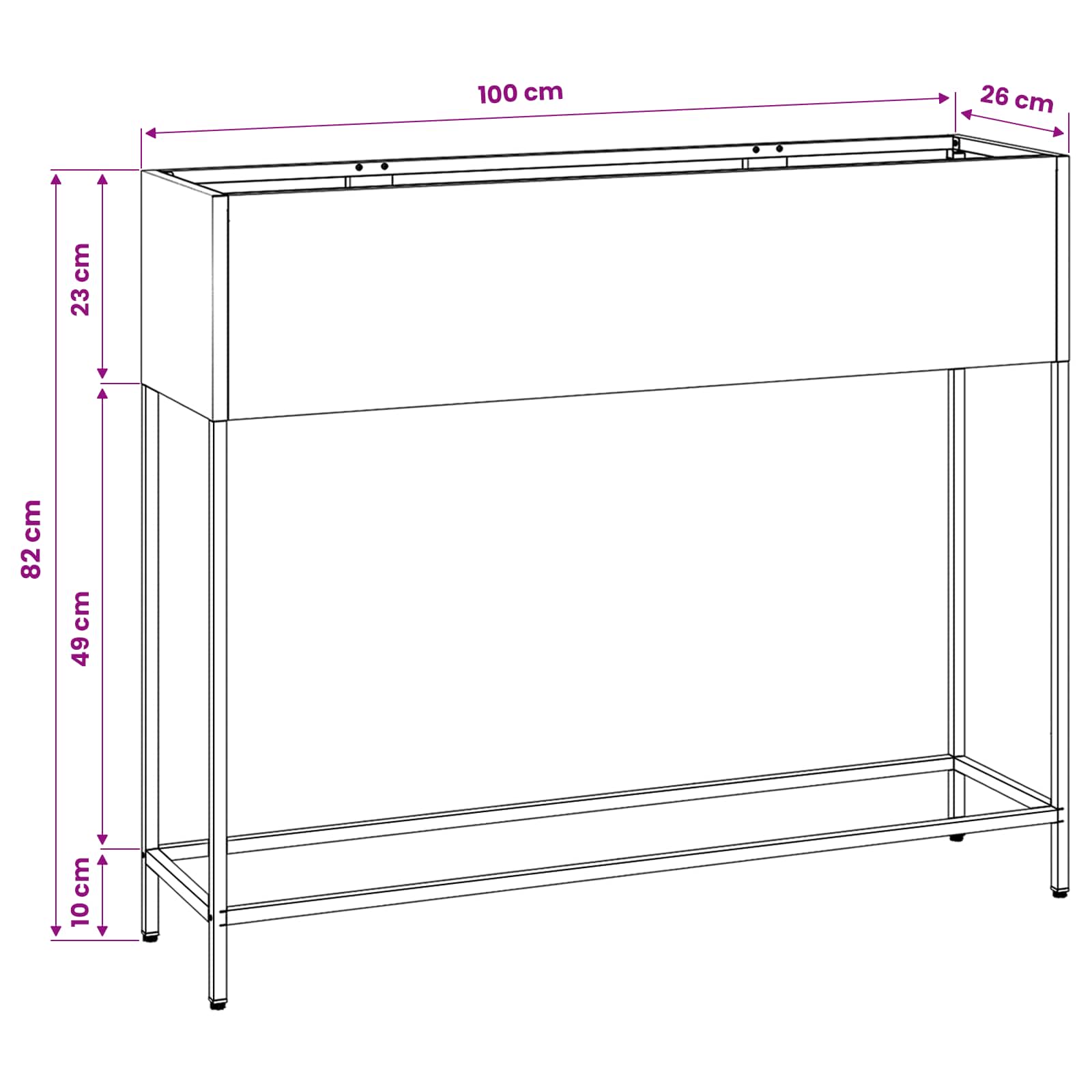 - Splošne dimenzije: 100 x 26 x 82 cm (D x Š x V)