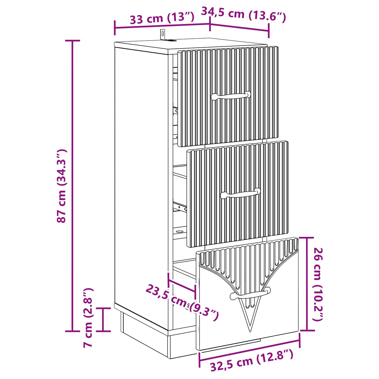 To moderna predalna šafka je več kot le uporabna, je tudi estetsko privlačen dodatek k vsakemu prostoru s svojim vintage slogom. Zgrajena iz inženirskega lesa, prinaša prijeten rustikalen občutek in ponuja obsežen prostor za shranjevanje. Idealna za dnevne sobe, se nevpadljivo zlije v okolje in je odlična rešitev za različne potrebe shranjevanja. Zasnovana je za tiste, ki cenijo kombinacijo funkcionalnosti in stila ter prinaša eleganten pridih v sodobno bivanje. Gradnja iz inženirskega lesa Ta predalna omara je robustna in lepa, saj les zagotavlja trdno strukturo in dolgotrajnost. Njena gladka površina ji daje lep in eleganten videz, ki obogati vsak prostor. Več predalov Opremljena z več kvalitetnimi predali, ta omara ponuja odlične rešitve za organizacijo vsega, od oblačil do dokumentov. Predali se zlahka odpirajo, tako da je dostop povsem enostaven. Vintage čar Vintage dizajn prinaša dotik nostalgije in topline v vaš prostor. Njena zasnova je klasična, medtem ko sodobni materiali omogočajo enostavno kombiniranje s modernim dekorjem. Ročaji za enostavno uporabo Ima ergonomsko oblikovane ročaje, ki olajšajo odpiranje predalov. Z eleganco se ujamejo z dizajnom omare in zagotavljajo, da je vse enostavno pri uporabi. Enostavno vzdrževanje Vzdrževanje te predalne omare je res preprosto. Z le brisanjem z vlažno krpo ohranjaš njen videz še leta, redno čiščenje pa poskrbi, da ostane lepa in funkcionalna. Ko jo sestavljaš, rabiš le dva, kar olajša postopek in vklopiš ta eleganten kos pohištva v svoj dom.