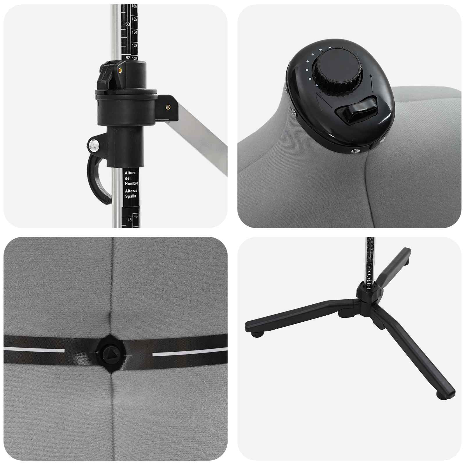 Ta moderna nastavljiva oblika obleke za ženske nudi neskončne možnosti za oblikovalce, šivilje in modne navdušence. Njena elegantna in gladka tekstura, narejena iz mehke žametne tkanine, prinaša občutek elegance in funkcionalnosti, kar je idealno za ustvarjanje personaliziranih oblačil. S čistimi linijami in praktičnimi značilnostmi se ta obleka lepo zlije v vsak prostor ter nudi vsestransko orodje za popolno krojenje. Premium žametni material Obleka je narejena iz kakovostnega žameta, ki ji dodaja šarm in eleganco. Mehka površina je prijetna na dotik, kar omogoča udobno delo. Obleke se zlahka premikajo čez njeno površino, ne da bi se ujele, kar zagotavlja brezskrbno izkušnjo za vse – tako začetnike kot izkušene krojače. Nastavljive funkcije Oblika obleke omogoča nastavljivo višino od 95 do 160 cm in 360° rotacijo, kar jo prilagodi različnim oblikam telesa in potrebam oblikovanja. Hiter mehanizem za prilagoditev omogoča enostavne spremembe, kar povečuje vašo ustvarjalno fleksibilnost. Vgrajena blazina za igle Oblika obleke ima vrat z vgrajeno blazino za igle za hrambo igel in sponk. Ta funkcija zagotavlja, da so vaša orodja vedno pri roki, kar omogoča neprekinjeno ustvarjalnost. Stabilna in trpežna podlaga Z stabilno in trpežno podlago oblika obleke nudi podporo med šivanjem. Njena trajnost pomeni, da zlahka prenaša vsakodnevno rabo in zagotavlja dolgotrajno uspešnost. Enostavno vzdrževanje Preprosta navodila za nego vključujejo brisanje obleke s suho krpo, kar ohranja njen prvotni izgled urejen. Enostavna nega zagotavlja, da vaš prostor ostane urejen, oblika pa je vedno pripravljena za naslednje projekte.