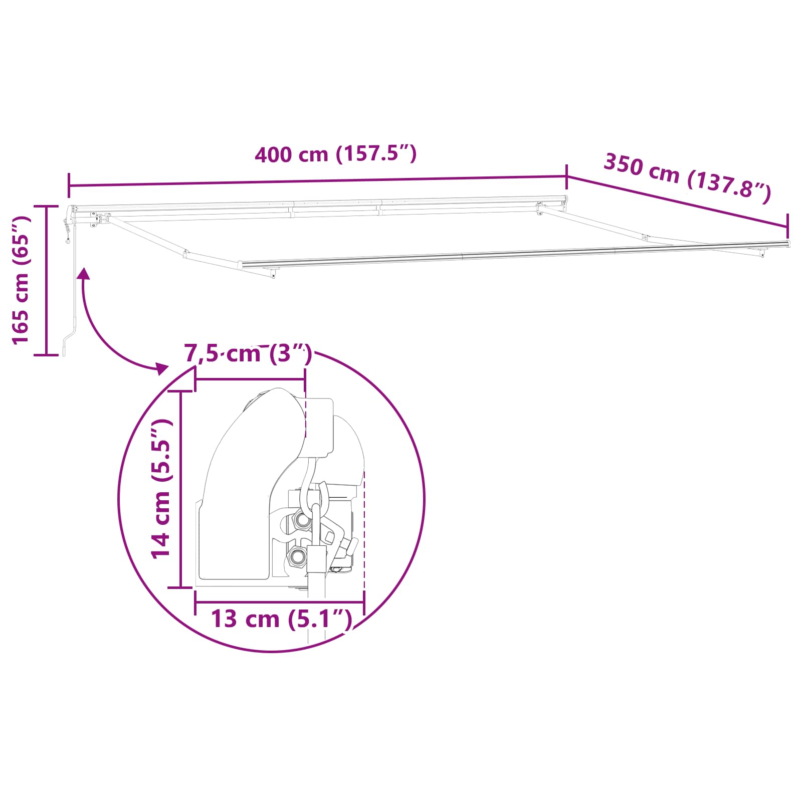 - Splošne dimenzije: 400 x 350 x 165 cm (D x Š x V)