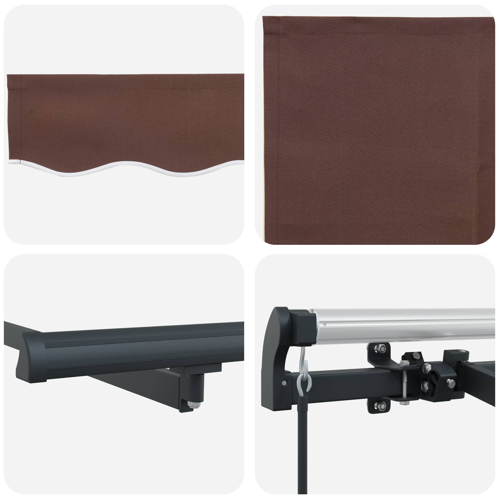 Ta moderna zložljiva terasa je zasnovana za zunanje prostore in ponuja kombinacijo stila in funkcionalnosti. Njena gladka in modernega izgleda oblika s črtasto strukturo daje živahen vtis in nudi odlično senco pred močnim poletnim soncem. Slog, navdihnjen z Evropo Super izgleda v sodobnih zunanjih prostorih, ta terasa ima eleganten dizajn in čiste linije, ki se lepo prilegajo vsaki terasi ali dvorišču. Njena zložljiva zasnova omogoča enostavno prilagojanje za tiste, ki iščejo stil in uporabnost v sončnem vremenu. Robustni materiali Materiali nudijo trajnost in odpornost na UV žarke ter poškodbe zaradi vode. Aluminijasti okvirji zagotavljajo trdnost, medtem ko ostanejo lahkotni za prevoz in postavitev. Prilagodljiva funkcionalnost Zložljiva zasnova omogoča, da se terasa raztegne za več pokritosti ali pa se zloži nazaj za prihranek prostora. Ta značilnost je odlična za prilagajanje različnim nivojem sončne svetlobe, kar povečuje udobje in praktičnost. Enostavno vzdrževanje Zelo malo skrbi je potrebno, saj jo preprosto obrišite z vlažno krpo, da ostane videti dobro. Narejena je iz materialov, ki lahko prenesejo vreme, kar pomeni, da bo dolgo zdržala brez preveč vzdrževanja. Prilagodljivo za različne nastavitve Ne glede na to, ali je na vrtu, terasi ali ob bazenu, ta terasa ponuja prilagodljive senčne rešitve za vse zunanje prostore. Super je za poletne dogodke ali sproščene trenutke na prostem. Nevarnost! Močna vzmet, ko se odpre. NE odstranjujte te vrvi, dokler ne opravite vseh korakov montaže, pri čemer so vsi vijaki pritrjeni, predmet pa je pritrjen na steno! Opozorilo! Bodite pozorni pri popuščanju ročic, saj so pod napetostjo! Nenadna sprostitev ročice zložljive tende lahko povzroči telesno poškodbo. Opozorilo: Pred uporabo izdelka morate prebrati navodila za uporabo. Opozorilo: Uporaba ob zmrzali lahko poškoduje izdelek. Zunanja uporaba pri gradnji in gradbenih delih.