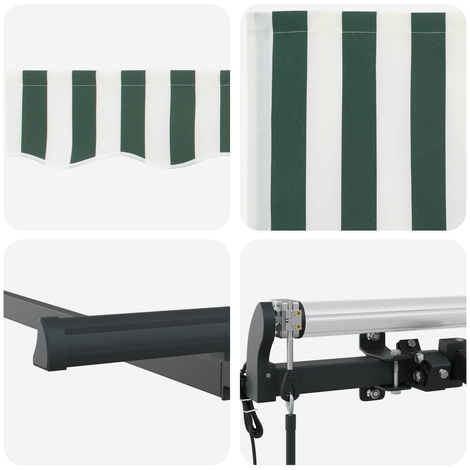 Ta moderna zložljiva terasa je zasnovana za zunanje prostore in ponuja kombinacijo stila in funkcionalnosti. Njena gladka in modernega izgleda oblika s črtasto strukturo daje živahen vtis in nudi odlično senco pred močnim poletnim soncem. Slog, navdihnjen z Evropo Super izgleda v sodobnih zunanjih prostorih, ta terasa ima eleganten dizajn in čiste linije, ki se lepo prilegajo vsaki terasi ali dvorišču. Njena zložljiva zasnova omogoča enostavno prilagojanje za tiste, ki iščejo stil in uporabnost v sončnem vremenu. Robustni materiali Materiali nudijo trajnost in odpornost na UV žarke ter poškodbe zaradi vode. Aluminijasti okvirji zagotavljajo trdnost, medtem ko ostanejo lahkotni za prevoz in postavitev. Prilagodljiva funkcionalnost Zložljiva zasnova omogoča, da se terasa raztegne za več pokritosti ali pa se zloži nazaj za prihranek prostora. Ta značilnost je odlična za prilagajanje različnim nivojem sončne svetlobe, kar povečuje udobje in praktičnost. Enostavno vzdrževanje Zelo malo skrbi je potrebno, saj jo preprosto obrišite z vlažno krpo, da ostane videti dobro. Narejena je iz materialov, ki lahko prenesejo vreme, kar pomeni, da bo dolgo zdržala brez preveč vzdrževanja. Prilagodljivo za različne nastavitve Ne glede na to, ali je na vrtu, terasi ali ob bazenu, ta terasa ponuja prilagodljive senčne rešitve za vse zunanje prostore. Super je za poletne dogodke ali sproščene trenutke na prostem. Nevarnost! Močna vzmet, ko se odpre. NE odstranjujte te vrvi, dokler ne opravite vseh korakov montaže, pri čemer so vsi vijaki pritrjeni, predmet pa je pritrjen na steno! Opozorilo! Bodite pozorni pri popuščanju ročic, saj so pod napetostjo! Nenadna sprostitev ročice zložljive tende lahko povzroči telesno poškodbo. Opozorilo: Pred uporabo izdelka morate prebrati navodila za uporabo. Opozorilo: Uporaba ob zmrzali lahko poškoduje izdelek. Zunanja uporaba pri gradnji in gradbenih delih. Nedovoľte deťom hrať sa z nadzorno napravo za žaluzije. Daljinski upravljalnik hranite izven dosega otrok.