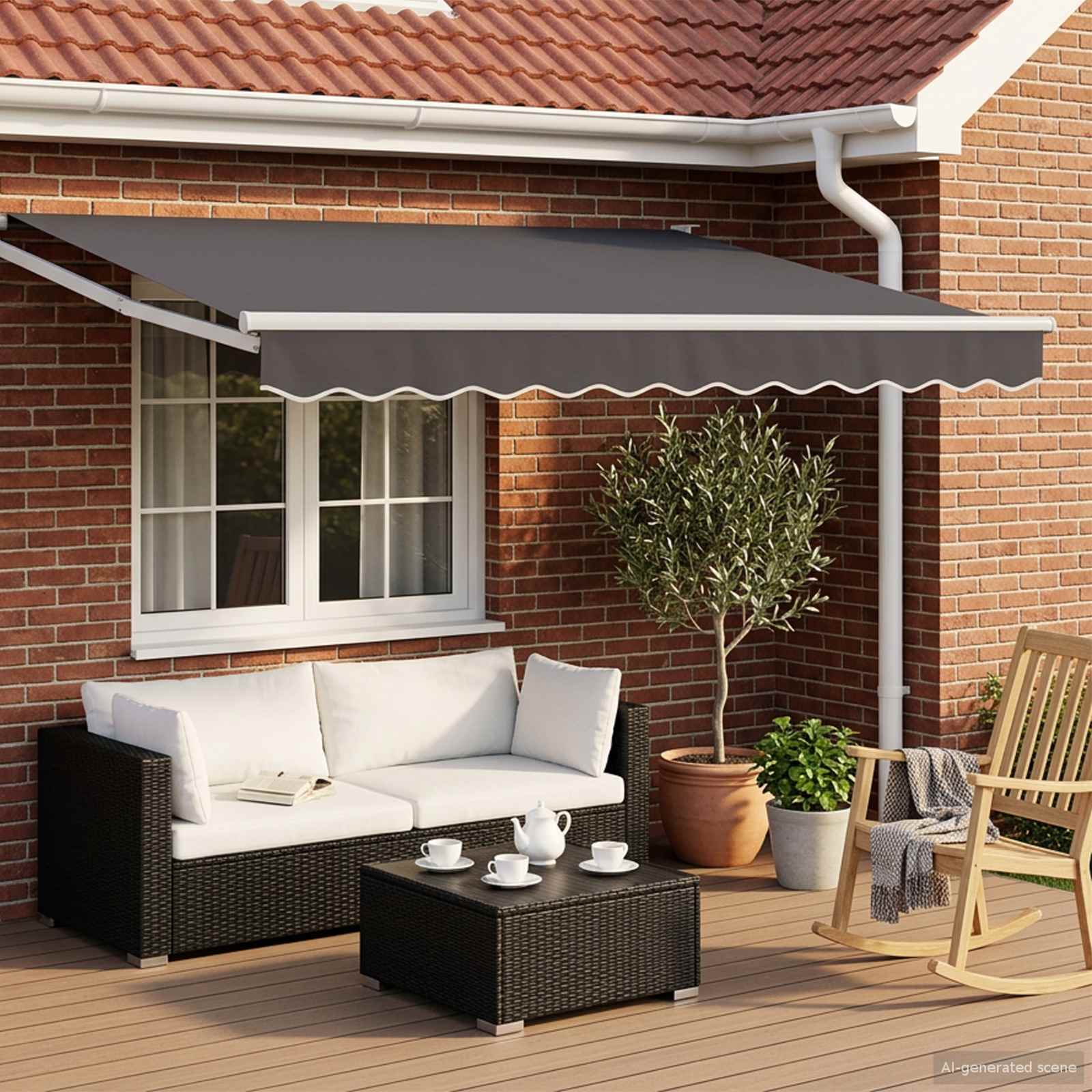 Moderna zložljiva senčnica je inovativna rešitev za zunanjo senco, idealna za vse, ki iščejo stil in funkcionalnost v obrambi pred soncem. Njena elegantna pravokotna oblika se lepo prilega sodobnim terasam in vrtom, ki so preprosti in minimalistični. Z lahkoto se raztegne in ustvari prostor, ki je popoln za poletna srečanja ali sprostitev. Izdelana je iz 100% poliester platna, ki nudi zaščitno oviro pred močnimi sončnimi žarki in izžareva sodoben duh. To ni le senca, ampak tudi stilna izbira za vaš zunanji prostor. Sestava materiala: Senčnica je narejena iz 100% poliester, ki nudi trpežnost in odpornost na elemente. Robustna tkanina se bori proti soncu in ohranja svojo obliko ter barve, tudi ob vsakodnevni uporabi. Vključeni elementi: Paket vsebuje okvir za senčnico in tkaninski del, skrbno zasnovan za stabilnost in učinkovitost. Okvir drži tkanino, tako da vedno ohrani obliko in funkcijo, ne glede na večkratno uporabo. Zložljiv mehanizem: Opremljena je z ročno delano funkcijo, ki omogoča enostavno prilagajanje dolžine in pokritosti s senco. To funkcijo naredi prilagodljivo za raznolike priložnosti od prijetnih večerov do sončnih popoldnevov. Priporočena uporaba: Ta senčnica je zasnovana za zunanjo uporabo in je idealna za vrtove in terase. Popolna je za poletne piknike, obroke na prostem ali trenutke sprostitve. Takoj izboljša vizualno in funkcionalno vrednost kakršnegakoli zunanjega prostora. Navodila za oskrbo: Ohraniti senčnico v top stanju je enostavno. Preprosto obrišite površino z vlažno krpo, da odstranite umazanijo in tako poskrbite za dolgotrajno delovanje ter ohranite njen videz.