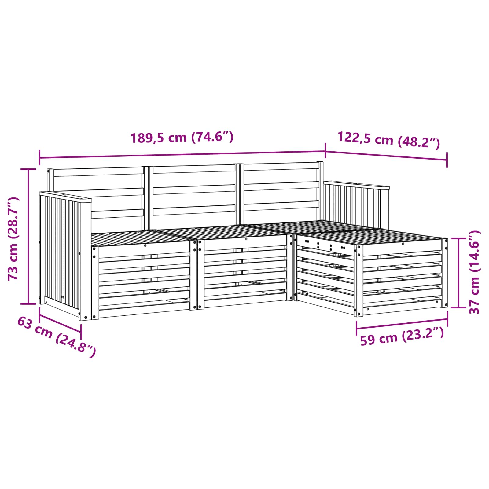 - 1 x končna sofa: 59 x 59 x 37 cm (D x Š x V)