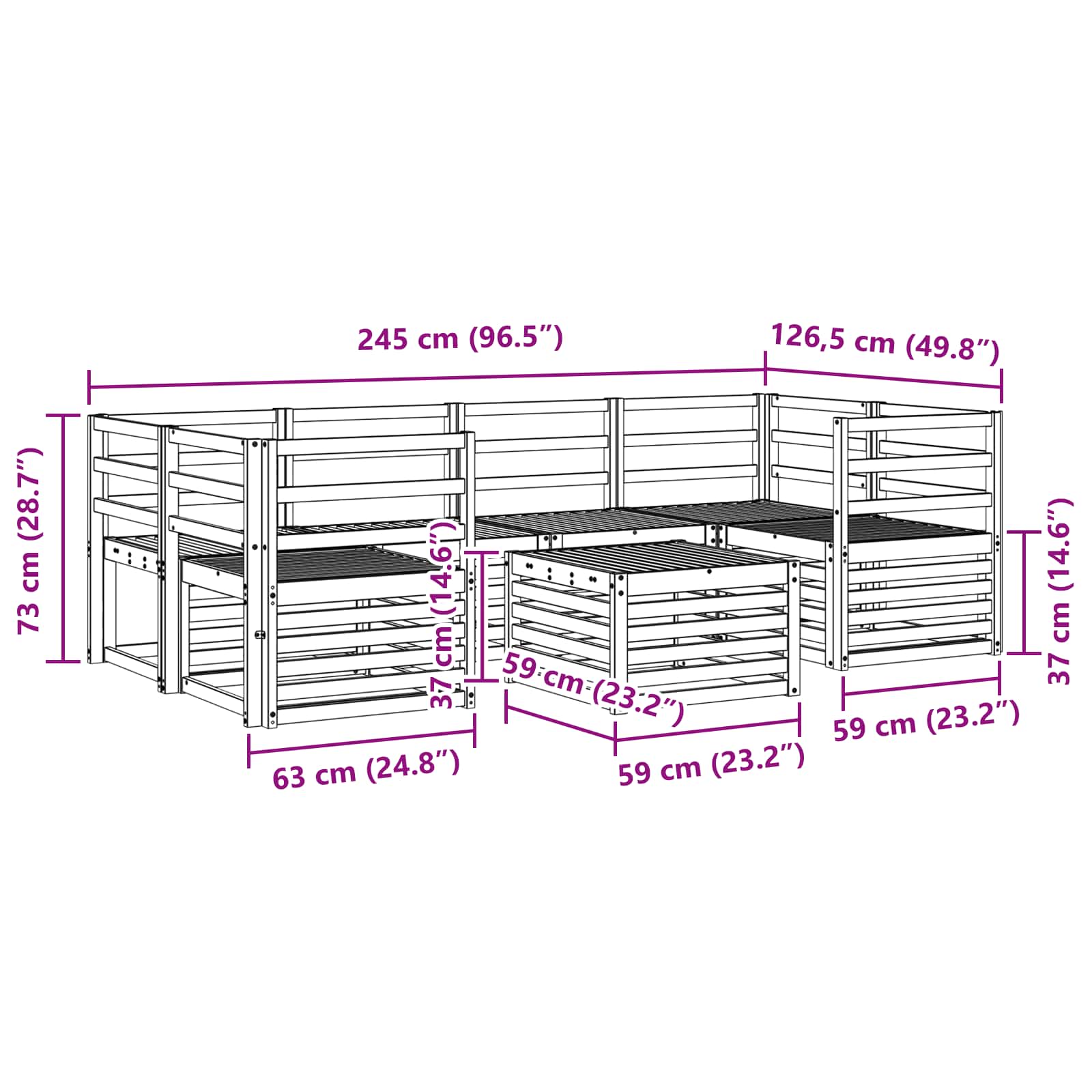 - 4 x Srednji sofa: 63 x 59 x 73 cm (D x Š x V)