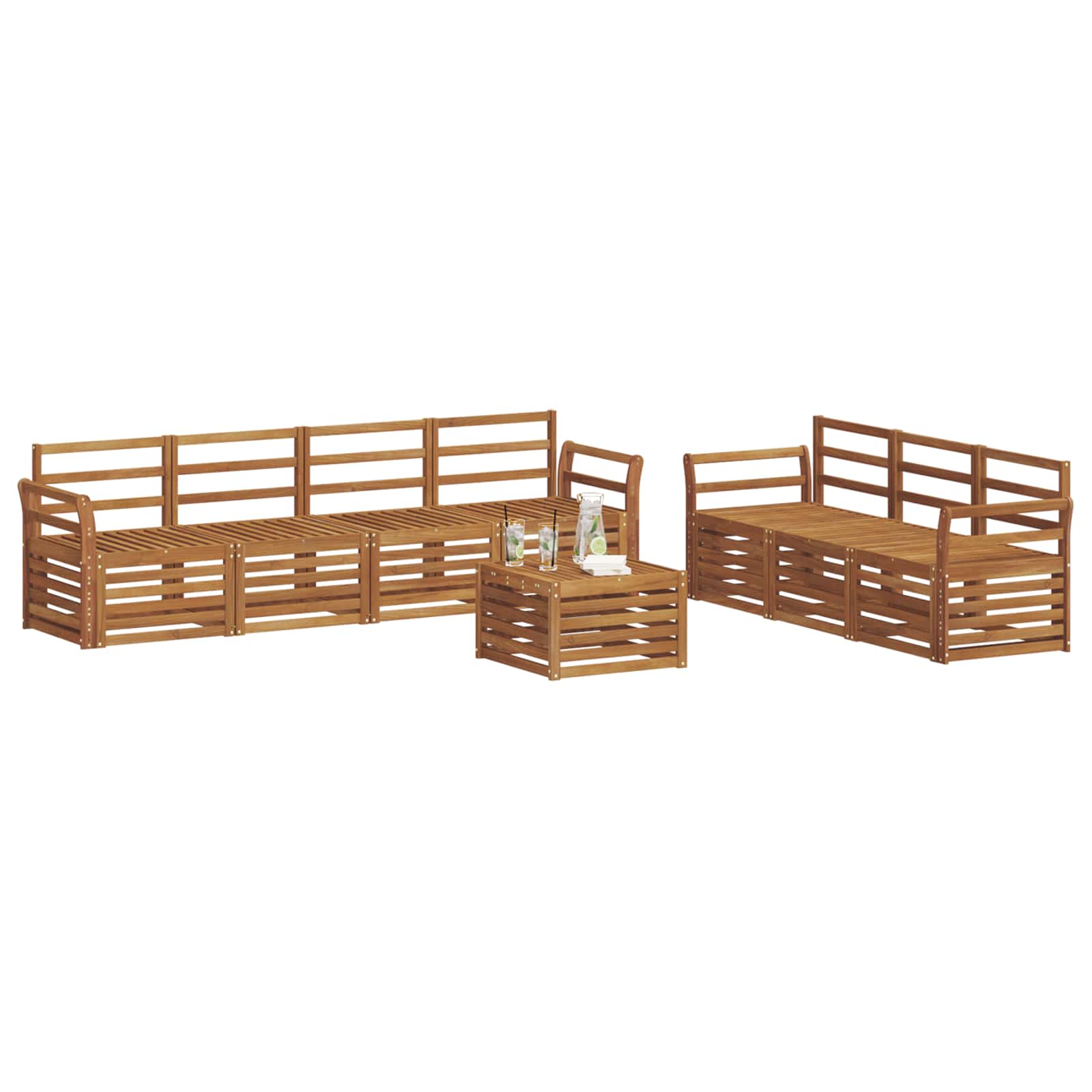 Zunanja garnitura pohištva združuje stil in funkcionalnost, kar postvari udarno središče za vsak vrt ali teraso. Njena moderna zasnova, opredeljena s čistimi linijami in minimalno obdelavo, dodaja eleganco in podpira sprostitev ter družabna srečanja na prostem. Narejena iz trdnega akacijevega lesa, kar zagotavlja trajnost in dolgotrajni vizualni videz, je idealna izbira za tiste, ki iščejo praktičnost in stil v zunanjem pohištvu. Trajna trdna akacijeva les: Narejena iz trdnega akacijevega lesa, ta garnitura je znana po svoji odpornosti na vremenske razmere. Trdna konstrukcija nudi zanesljivo podporo, medtem ko topli naravni ton dopolnjuje vsak vrt ali teraso. Odporna na vreme zasnova: Garnitura ima lakirano površino, ki nudi dodatno zaščito pred soncem, lahkim dežjem in drugimi zunanjimi dejavniki. Poliširan zaključek ohranja videz in funkcionalnost, kar garantira dolgotrajno uporabo v vašem vrtu, terasi ali dvorišču. Komponente in zasnova: Vsak del, od naslonov za roke do podpornih elementov, je zasnovan tako za estetiko kot tudi funkcijo. Podporniki zagotavljajo udobje, medtem ko kohezivna zasnova prinaša vizualno harmonijo, primerno za različne zunanje priložnosti. Udobje in vsestranskost: Modularna zasnova omogoča prilagodljive postavitve, ki ustrezajo različnim prostorom in potrebam. Idealno za sprostitev, družabna srečanja ali mirno branje, ta set brez težav ustreza vsakemu zunanjemu okolju in maksimira udobje. Enostavno vzdrževanje in sestavljanje: Da ohranite pohištvo, ga le obrišite z vlažno krpo in se izogibajte trdnim ali abrazivnim čistilom. Redno vzdrževanje ohranja videz in podaljšuje življenjsko dobo pohištva.