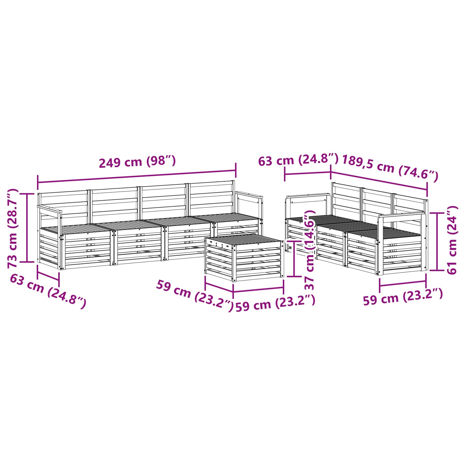 - 7 x Srednji kavč: 63 x 59 x 73 cm (D x Š x V)