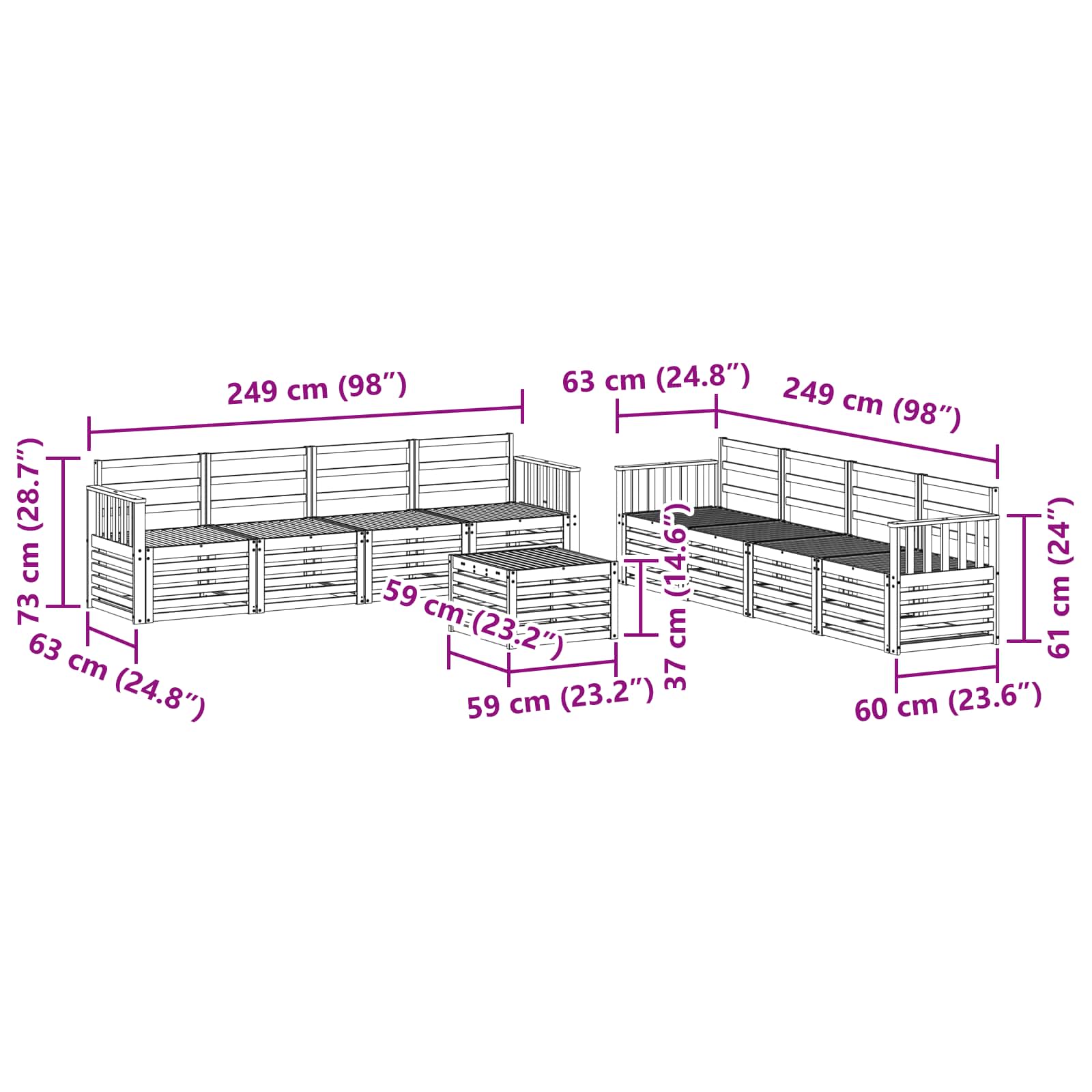 - 8 x Srednji kavč: 63 x 59 x 73 cm (D׊×V)