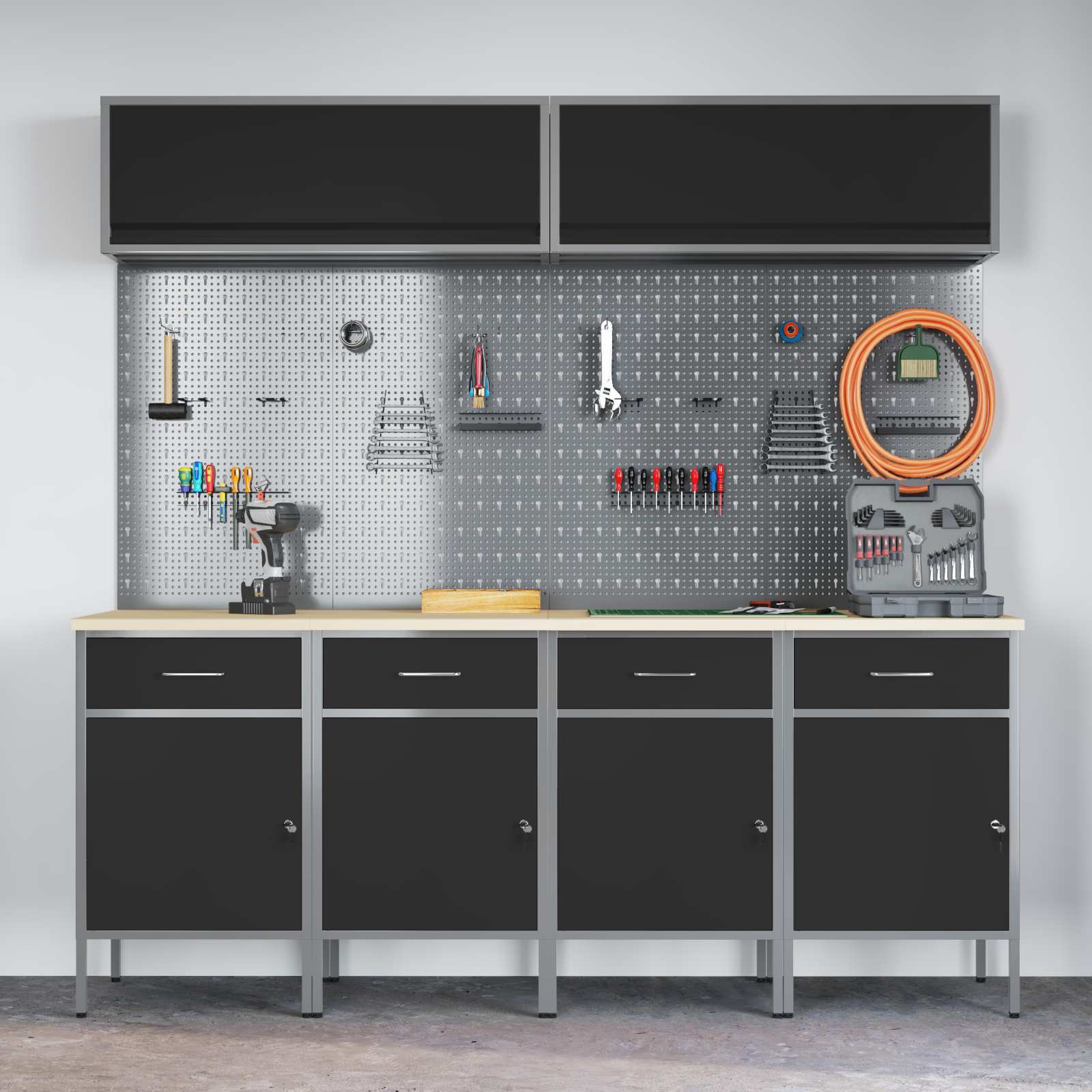 Ta delovna omara je zasnovana tako, da združuje funkcionalnost in estetiko, zato bo popestrila vsak delovni prostor. Njena elegantna pravokotna oblika in sodoben stil sta odlična za vse, ki cenijo lepo in organizirano okolje. Zasnovana je za enostavno rabo, kar je odlično za shranjevanje orodij, medtem ko ohrani čisto podobo delovnih prostorov. Materiali: Prašno lakirano jeklo in inženirski les zagotavljata dolgo življenjsko dobo in robustnost omarice. Jeklo nudi močno zaščito, medtem ko inženirski les doda lepoto celotnemu videzu. Ta kombinacija materialov ponuja moč in estetiko. Vključene komponente: Delovna omara ima ročno nastavljive nogice, ki se prilagajajo različnim višinskim potrebam. To omogoča širšo uporabnost in udobje, saj si uporabniki lahko omarico prilagodijo po svoje. Funkcije / Oblika / Oblikovanje: S sodobnim privlačnim dizajnom je pravokotna oblika odlična rešitev za upravljanje prostora. Čiste linije izražajo minimalizem in ponujajo urejeno možnost za učinkovito shranjevanje orodij. Nastavljive nogice dodatno izboljšajo njeno funkcionalnost. Priporočene uporabe: Ta omarica je perfektna za delovne prostore in je odlična izbira za mojstre in strokovnjake, ki potrebujejo organizirano shranjevanje orodij, priročnikov in dodatkov ter ponuja vzdržljivost, kar se prilega vsakemu notranjemu delovnemu prostoru. Osnovno vzdrževanje: Za sestavo potrebujete še eno osebo in izvijač. Upoštevanje navodil proizvajalca je ključno za ohranjanje stabilnosti in dolge življenjske dobe omarice, kar narekuje, da je vzdrževanje lahko enostavno, a pomembno.