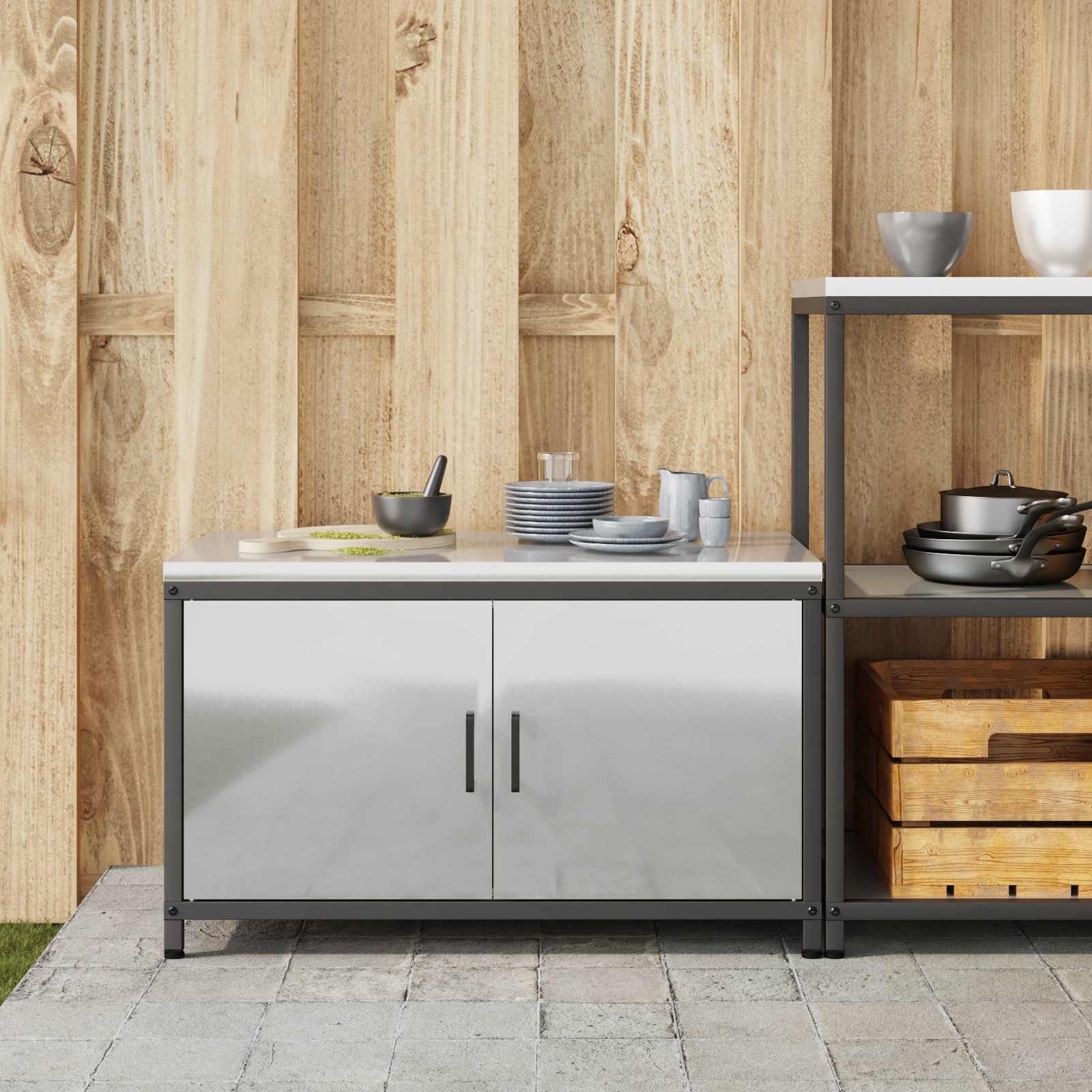 Ta kuhinjski regal za shranjevanje združuje moderni stil in funkcionalno zasnovo, kar je idealno za povečanje prostora za shranjevanje in hkrati doda estetski pridih tvoji kuhinji. Ima elegantno pravokotno obliko, čiste linije in minimalne okraske, kar izraža eleganco in izjemno uporabnost. Narejen je za notranjo uporabo in je perfektno zasnovan za organizacijo pribora, posode ali izdelkov iz shrambe v vsaki moderni kuhinji. Stabilen jeklena okvir natančno nudi potrebno podporo za vsakodnevno rabo in tvojo kuhinjo preobraža v dobro organiziran prostor, primeren za ljubitelje kuhanja in zabave. Vzdržljiva jeklena konstrukcija Ta regal je narejen iz vrhunskega jekla, kar ga dela idealnega za vsakodnevno rabo. Jeklena površina nudi eleganten zaključek in dodaja industrijski pridih v tvojo kuhinjo. Znano je, da je jeklo vzdržljivo in trdno, kar zagotavlja dolgo življenjsko dobo z minimalnim obrabljenjem. Izboljšaj svoj prostor s zanesljivo shranjevalno rešitvijo, ki je zasnovana za dinamična kuharska okolja. Prostorne police Ta regal ponuja dovolj prostora za shranjevanje stvari, od jedi do kuhinjskih pripomočkov. Police, ki podpirajo različne materiale kot so MDF ali vezane plošče, nudijo zanesljivo in prilagodljivo platformo za tvoje shranjevanje, dostopne in fleksibilne organizacije v zasedenih kuhinjah. Sodoben slog Zasnovan tudi za moderni okus in funkcionalnost, ta regal se odlično ujema z vsakim kuhinjskim stilom. Čiste linije in minimalno okrasje zagotavljajo, da se lepo vklopi v obstoječi dekor in prinaša poenostavljen izgled v tvojo kuhinjo. Preprosta navodila za sestavljanje Dokaj preprosto je sestavljanje; potrebuješ le izvijač, navodila pa so enostavna. Vzdrževanje je prav tako lahkotno; površine obriši z vlažno krpo in tvoja kuhinja bo ostala urejena in vizualno privlačna s to rešitvijo za skladiščenje, ki zahteva malo vzdrževanja. Optimizacija prostora Ta enota omogoča max izkoriščenost prostora v kuhinjah vseh velikosti. Ponuja dovolj prostora za shranjevanje potrebnih stvari, da ostanejo dostopne in ne ovirajo delovnega prostora. Ne glede na to, ali imaš majhno ali večjo kuhinjo, ta regal ponuja super organizacijsko rešitev.