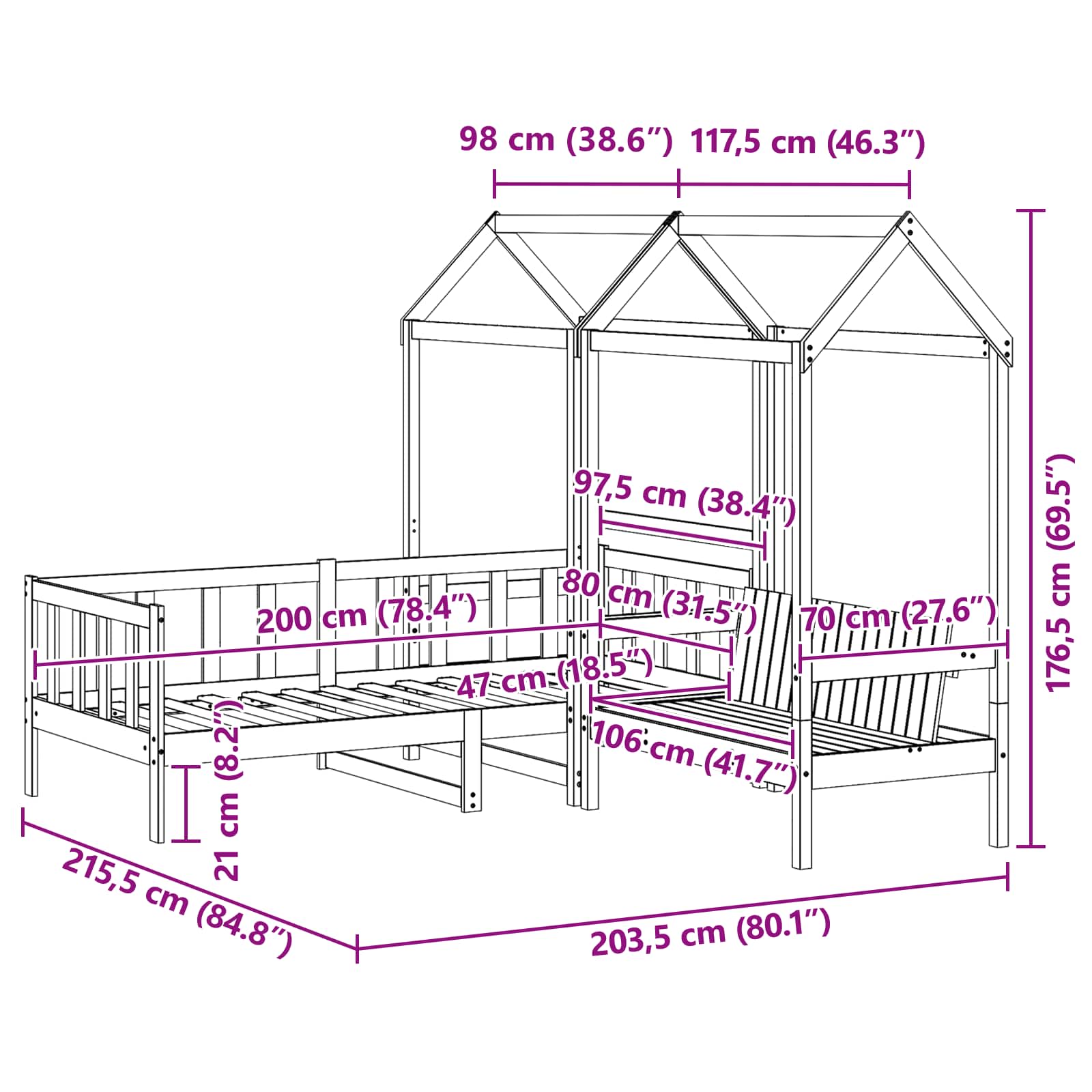 Ta moderna posteljna garnitura doda pridih elegance vsakemu prostoru. Združuje funkcionalnost z modernim dizajnom. Izdelana je iz trdnega borovega lesa, kar ji daje robustnost in stabilnost ter zagotavlja, da je spalna površina udobna. Minimalistična zasnova in čiste linije predstavljajo sodobno estetiko, kar jo naredi daljša in prava izbira za vaše stanovanje. Trden borov les: Ta dnevna postelja je iz trdnega borovega lesa, znanega po moči in vzdržljivosti, kar pomeni, da bo trajala dolgo. Naravna struktura dodatno izboljša videz postelje in poskrbi za prijetno vzdušje. Kvadratna noga: Posteljni okvir s kvadratnimi nogami ponuja preprost in sodoben videz ter stabilnost. Njegove ravne strani so v skladu s sodobno estetiko, kar prispeva k dobremu spancu. Samostojna fleksibilnost: Ta postelja je zasnovana, da stoji neodvisno, ne potrebuje stenske podpore, kar omogoča enostavno preureditev prostora. Prilagaja se različnim dimenzijam in stilom sobe. Funkcionalnost strehe: Zasnova vključuje strešni element, ki združuje estetiko in praktičnost. Ta dodatni detajl nudi prijeten in udoben izgled, kar izboljša karakter prostora. Enostavno vzdrževanje: Ta postelja je zelo enostavna za vzdrževanje – potrebujete le suho krpo. Preprosto čiščenje omogoča, da ohranja svež in čist videz skozi čas.