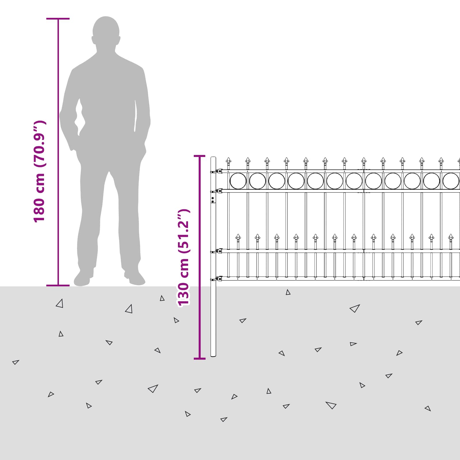 Moderna Spike Ring Fence prinaša eleganten, funkcionalen pristop k zunanji zaščiti in združuje preprostost s sodobnim dizajnom. Ta pravokotna rešitev za ograje je zasnovana za zunanjo uporabo in nudi tako slog kot varnost za vaš vrt, teraso ali dovoze. Ograja iz prašno lakiranega jekla ne ponuja le sodobnega estetika, ampak je tudi trdna, odporna na vremenske vplive. Idealna izbira za lastnike, ki iščejo funkcionalno in stilsko rešitev, se lepo ujema z različnimi sodobnimi arhitekturnimi slogi in obljublja enostavno vzdrževanje. Vzdržljivo prašno lakirano jeklo: Ta ograja iz vrhunskega prašno lakiranega jekla združuje slog in zmogljivost. Površina je zaščitena, kar zmanjšuje možnost poškodb in ji zagotavlja dolgo življenjsko dobo tudi ob spreminjajočih se vremenskih razmerah, kar pomeni manj potrebe po popravilih. Vsestran inovativen dizajn: Povezan sistem panelov omogoča enostavno prilagoditev kotov in dolžin. To pomeni fleksibilnost za postavitev v različnih pokrajinah in za različne namene, kot so opredeljevanje meja ali povečanje varnosti, kar lastniku ponuja mirno srce. Lastnosti odpornosti na vreme: Ograja je zasnovana za prenašanje zunanjih pogojev in ne bo poškodovana v različnih vremenskih situacijah. Njene lastnosti zagotavljajo, da ostane v odličnem stanju tudi ob močnem dežju ali močni sončni svetlobi, kar ji podaljšuje življenjsko dobo in zmanjšuje potrebo po vsakodnevnem vzdrževanju. Enostavno vzdrževanje: Ustvarjanje svojega prostora s to nizko vzdržno ograjo je brez skrbi. Njeno ohranjanje je preprosto, dovolj je občasno brisanje z vlažno krpo. Priporočljivo je izogibati se močnim kemikalijam in abrazivom, da ograja ostane v dobrem stanju brez napora. Enostaven postopek sestavljanja: S povezovalnimi dodatki je namestitev preprosta. Z vrtalnikom in merilnim trakom lahko ena oseba hitro in enostavno postavi ograjo. Ta enostavna metoda omogoča hitro in varno postavitev tako za profesionalne kot za DIY navdušence.