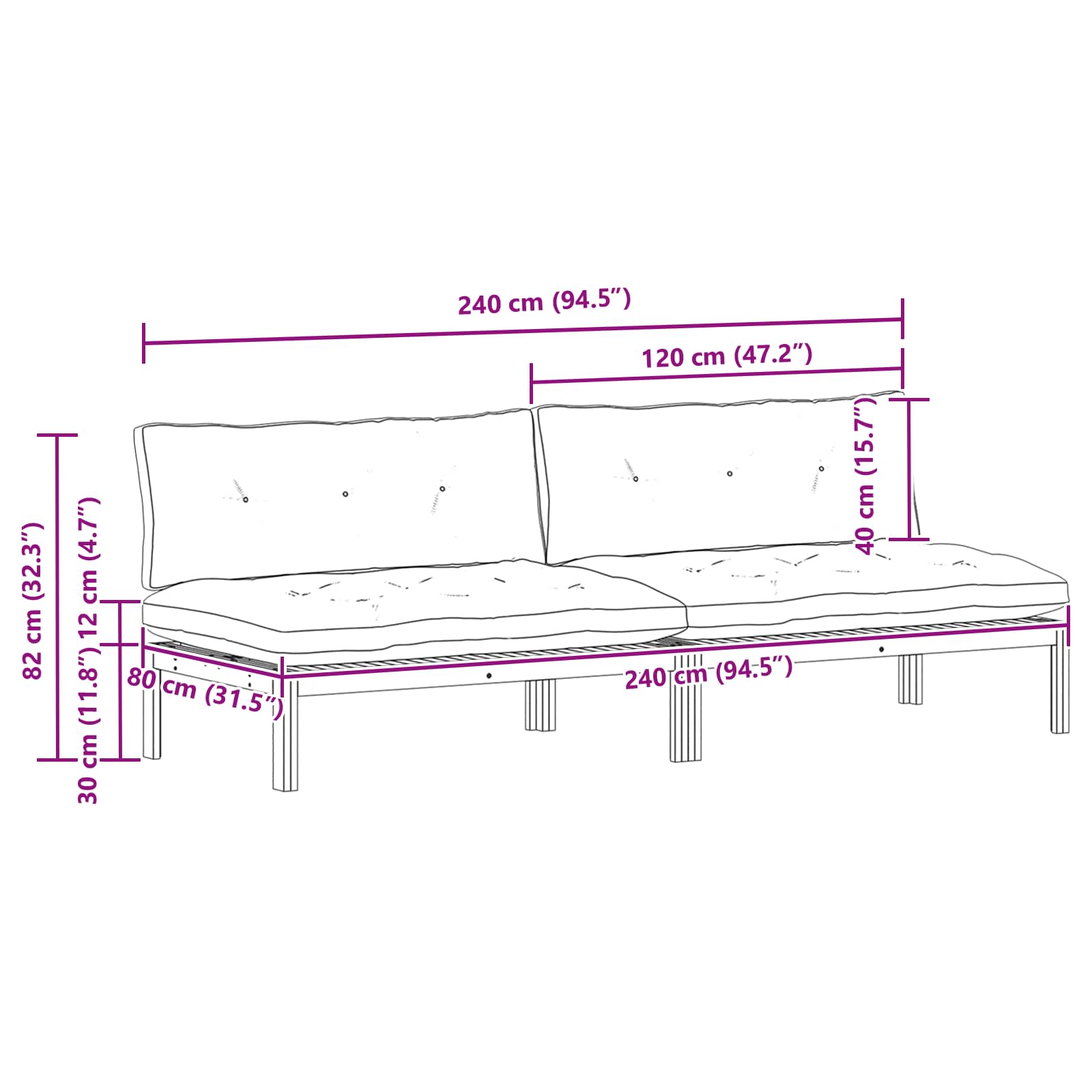 - 2 x Sedalna Blazina: 120 x 80 x 12 cm (D x Š x V)