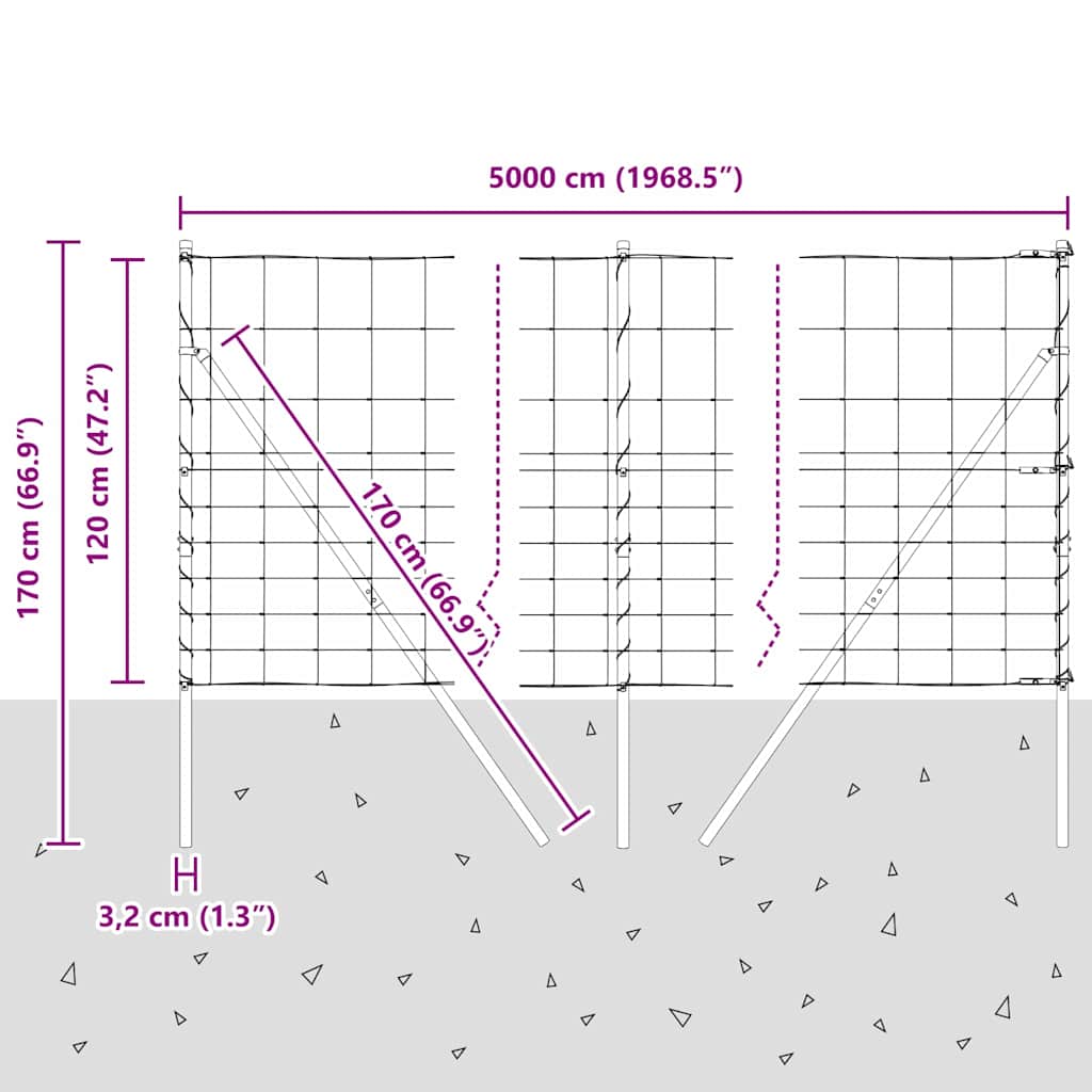 - Splošne dimenzije: 5000 x 120 cm (D x Š)