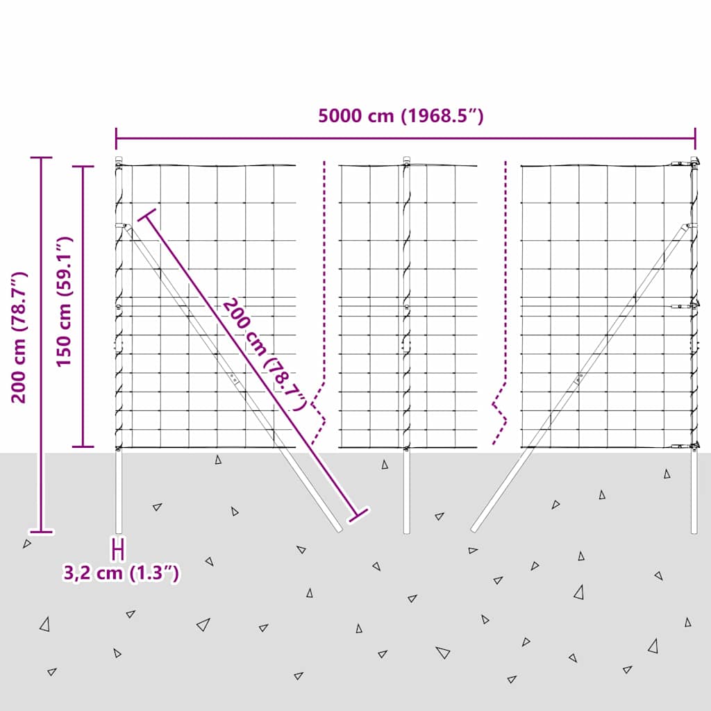 - Splošne dimenzije: 5000 x 150 cm (D x Š)