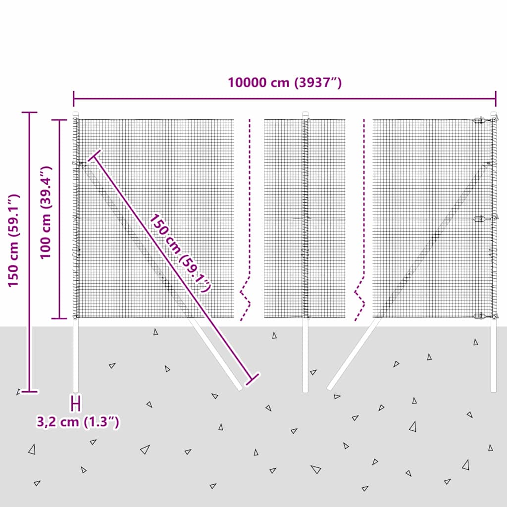 • Splošne dimenzije: 10000 x 3,2 x 100 cm (D x Š x V)