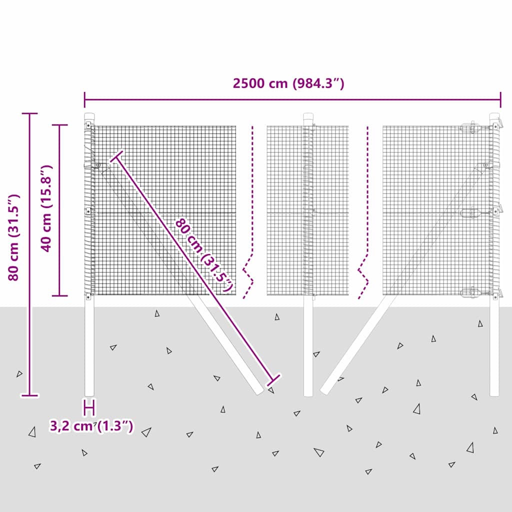 - Splošne dimenzije: 2500 x 3,2 x 40 cm (D x Š x V)