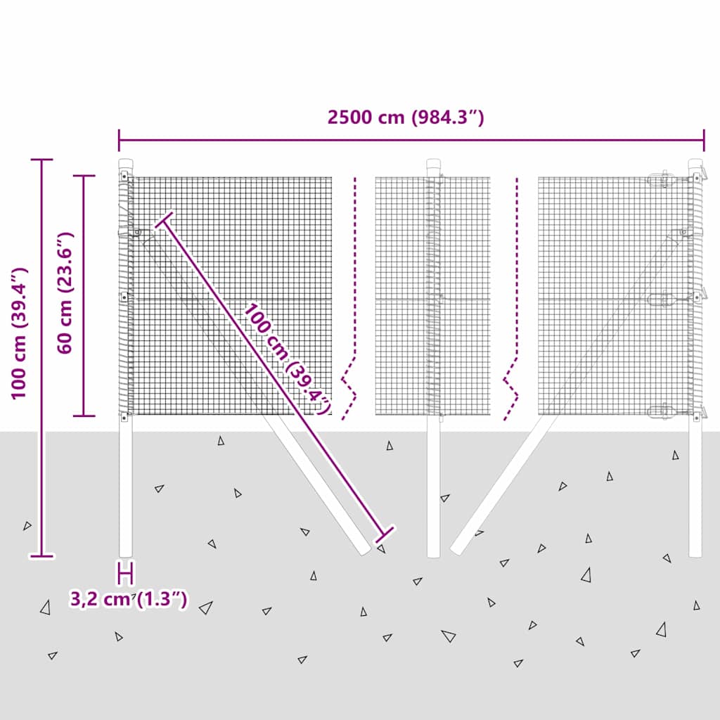 - Splošne dimenzije: 2500 x 3,2 x 60 cm (D x Š x V)