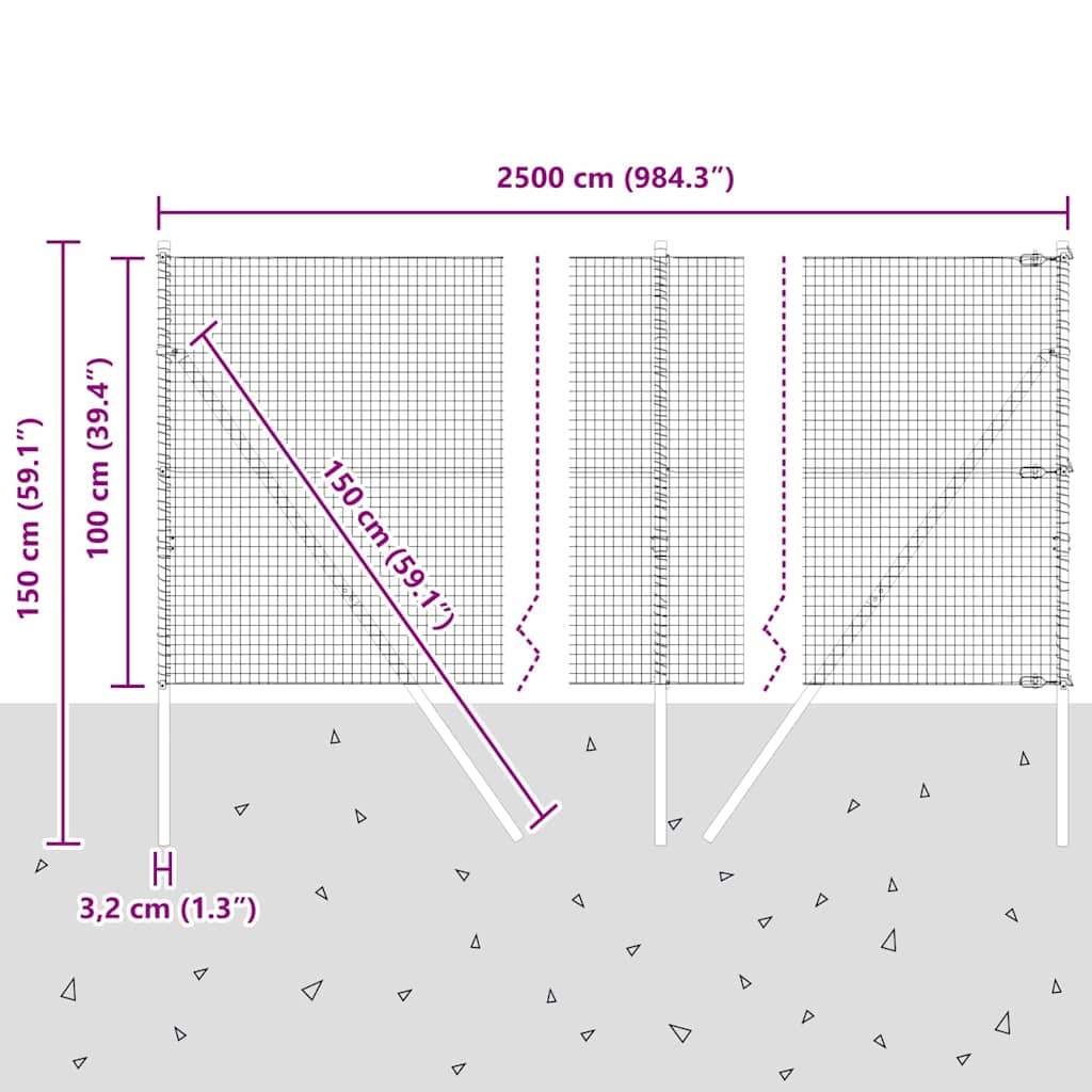 Steber ograje. Siva 25 x 1 m (25 x 25 mm mreža) Jeklo