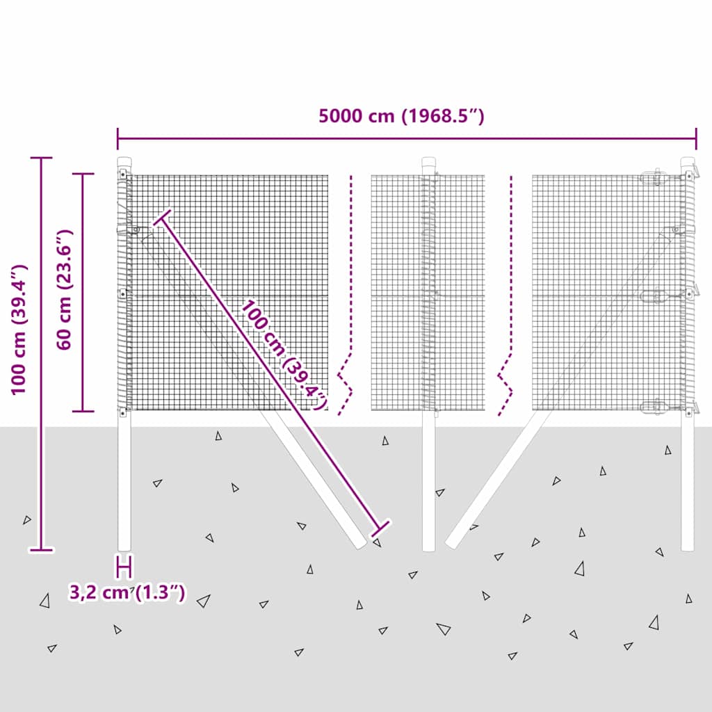 - Splošne dimenzije: 5000 x 3,2 x 60 cm (D x Š x V)