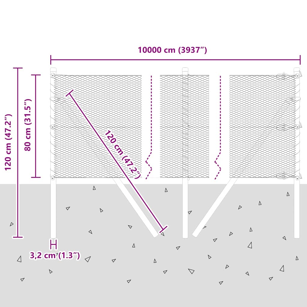 Steber ograje. srebrna 100 x 0,8 m (13 mm mreža) Jeklo