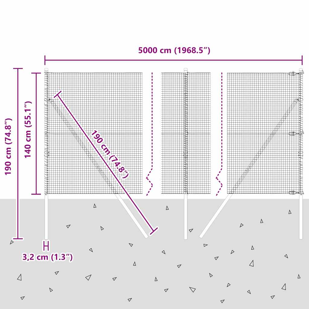 - Splošne dimenzije: 5000 x 3,2 x 140 cm (D x Š x V)