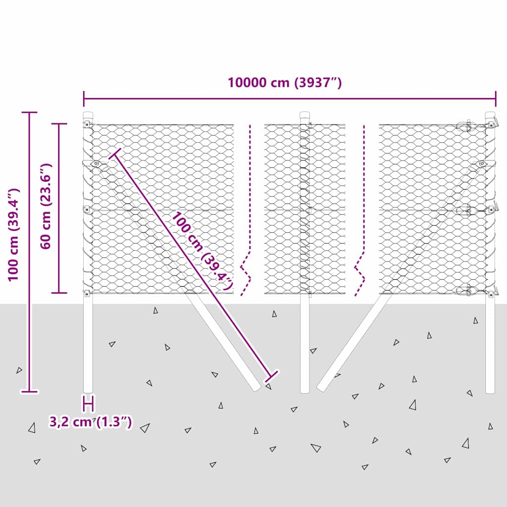 - Splošne dimenzije: 10000 x 3,2 x 60 cm (D x Š x V)