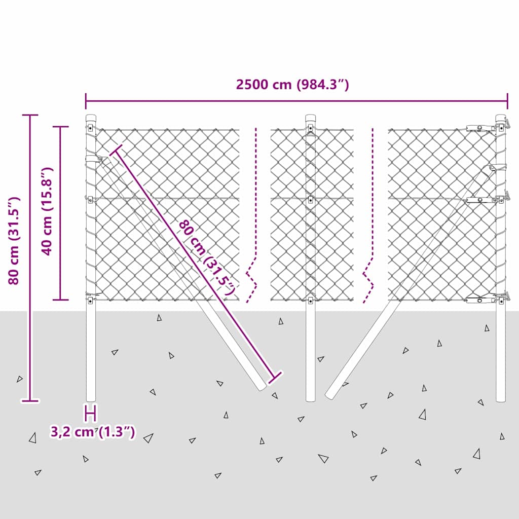 • Splošne dimenzije: 2500 x 3,2 x 40 cm (D x Š x V)