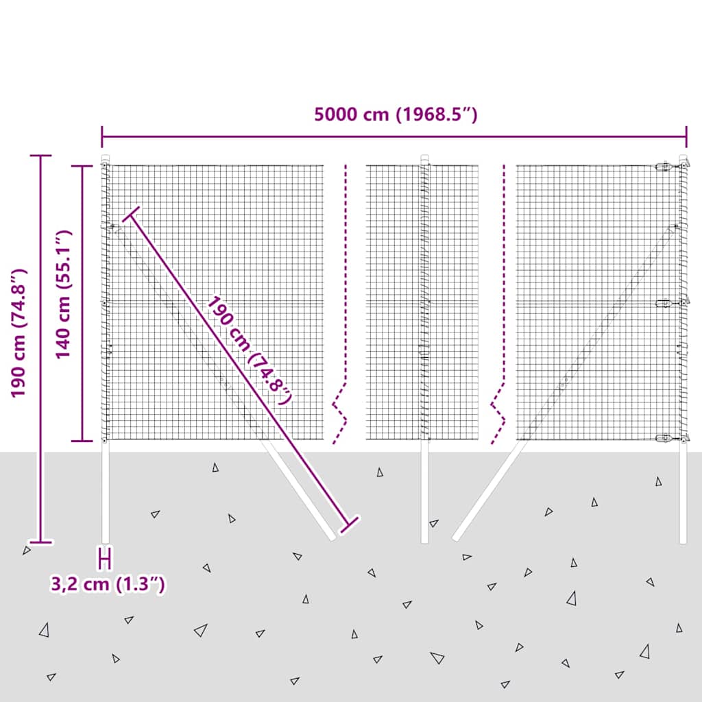- Splošne dimenzije: 5000 x 3,2 x 140 cm (D x Š x V)