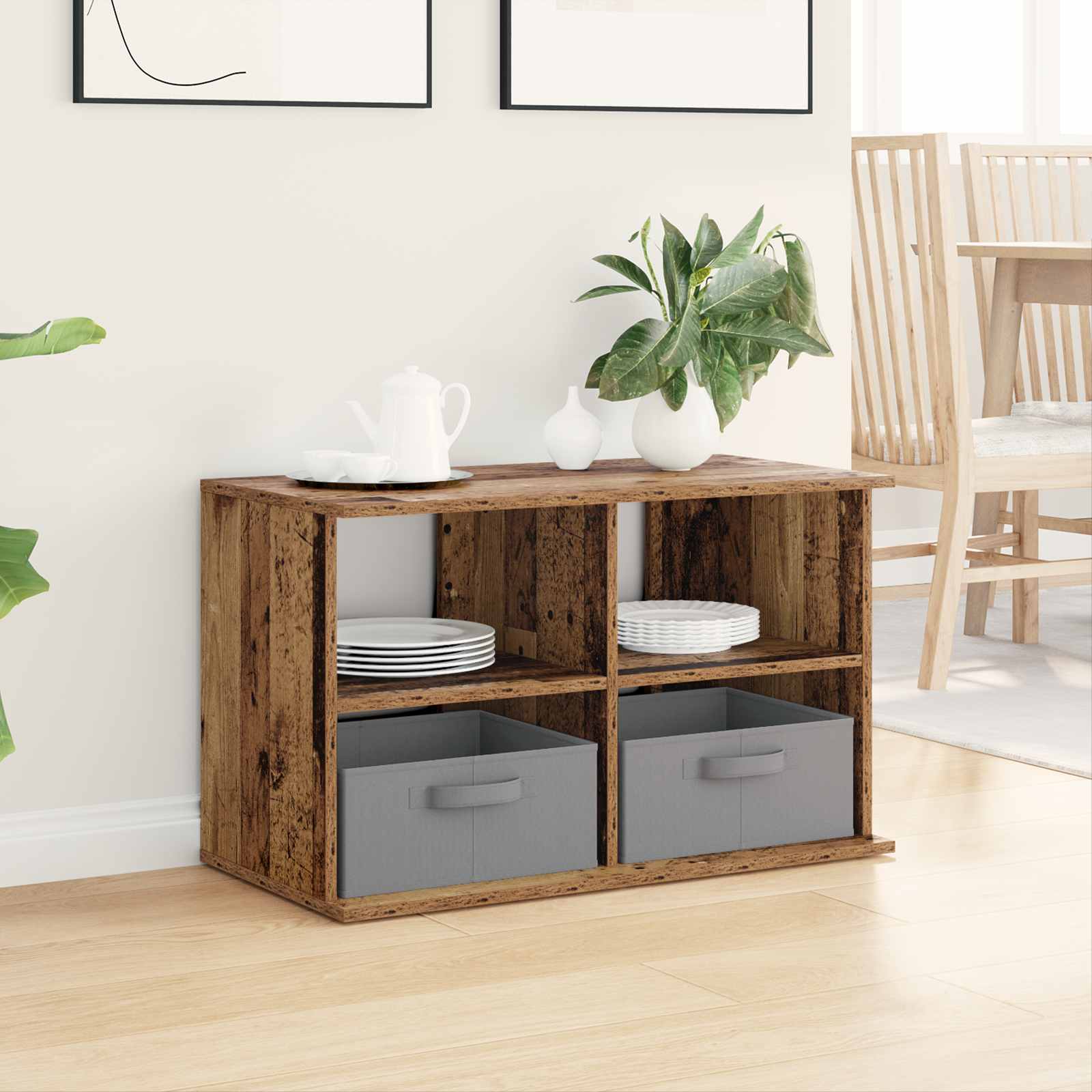 Ta sodoben nizek regal, tudi znan kot TV stojalo, ponuja odlično kombinacijo stila in funkcionalnosti. Njegov minimalističen izgled se brez težav zlije s sodobnimi bivalnimi prostori in izboljša splošno vzdušje. Poleg tega, da je vizualno privlačen, deluje tudi kot odličen shranjevalni sistem, kar ga naredi idealnega za ohranjanje reda, bodisi za medijske naprave, knjige ali vsakdanje potrebščine. Struktura iz inženirskega lesa TV regal je narejen iz inženirskega lesa, kar mu daje odpornost na vsakodnevno obrabo, hkrati pa ohranja eleganten videz. Ta material omogoča enostavno vzdrževanje ter dolgo življenjsko dobo, ki se prilagaja različnim estetskim potrebam. Praktične police Police nudijo trdno in zanesljivo površino za shranjevanje, idealno za organizacijo DVD-jev, igralnih konzol ali dekorativnih predmetov. Z lahkim dostopom podpirajo tako funkcionalnost kot videz. Prilagodljiva uporaba Ta TV regal je primeren za raznolike postavitve in služi več namenom, od shranjevanja medijskih naprav do funkcioniranja kot okrasni element. Ponuja prilagodljivost, kar je odlično za različne stile notranje opreme. Oblikovanje vgrajenih ročajev Vgrajeni ročaji na predalih so skrbno zasnovani, da ne motijo elegantnih linij enote. Omogočajo enostavno odpiranje brez vizualnih motenj. Potrebna je sestava TV regal pride v celoti, vendar ga morata sestaviti dve osebi. Vse potrebne komponente in navodila so vključena, za lažjo in brezskrbno nastavitev.