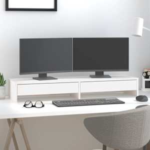 To klasično leseno stojalo za monitor z minimalističnim dizajnom doda čudovit pridih vašemu trenutnemu bivalnemu prostoru. Trdna borovina: Trdna borovina je čudovit naravni material. Borovina ima ravne vzorce, grče pa dajejo materialu njegov značilen, rustikalen videz.Stabilen okvir: Lesen okvir tega stojala za računalnik zagotavlja trdnost in stabilnost.Prostor za shranjevanje: Prostor pod stojalom za računalniški monitor je primeren za vašo tipkovnico, DVD predvajalnik, igralno konzolo, sprejemnik, oddajnike, nosilce medijev, zvezke, pisala in podobne predmete. 2 predala lahko pomagata bolje organizirati majhne predmete.Funkcija za zmanjševanje obremenitve: To stojalo za tipkovnico se lahko uporablja za dvig vašega namiznega monitorja in drugih večpredstavnostnih naprav. Z dvigom zaslona boste zmanjšali obremenitev vratu in hrbta. Opomba:Vsakemu izdelku je priložen priročnik za enostavno sestavljanje.