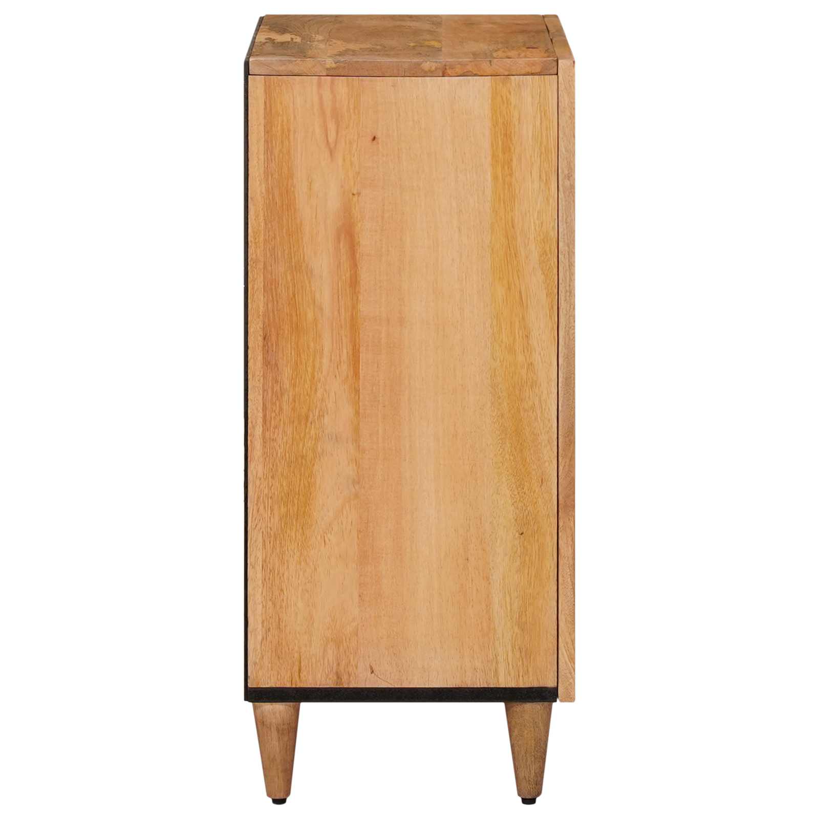 Ta moderna stranska omarica vas takoj pritegne s svojim čistim pravokotnim oblikovanjem in praktičnostjo. Zasnovana je z odličnim spojem trdega mangovega lesa in inženirskega lesa, kar ustvarja super kombinacijo estetike in uporabnosti. Njen eleganten izgled izžareva preprostost in funkcionalnost, kar jo dela odlično izbiro za sodobne notranjosti. S predstavitveno zadnjo stranjo omogoča fleksibilno postavitev, tako da ponudi tako stil kot praktičnost z vseh kotov. Materiali: Ta stranska omarica je narejena iz vrhunskega trdega mangovega lesa, izbranega zaradi svoje moči in trdnosti. Inženirski les dodaja zanesljivost in trajnost. Naravni vzorci lesa ji dajejo edinstven izgled, hkrati pa ohranja sodoben stil. Vključene komponente: Z vrati s tečaji in udobnimi gumbastimi ročaji, omogoča enostaven dostop do vsega shranjenega. Končana zadnja stran daje omarici lep in čist videz, kar omogoča postavitev v odprtem prostoru brez skrbi. Stabilne lesene noge zagotavljajo trdnost in ravnotežje ter dodajo sodoben pridih. Lastnosti: Zasnova stranske omarice je trpežna in premišljena, kar ji omogoča dolgo življensko dobo, brez da bi izgubila svoj elegantni izgled. Zanesljivo služi za shranjevanje pribora, prtičev in drugih potrebščin, vedno pripravljena na pomoč pri organizaciji. Priporočena uporaba: Ta kos je super za jedilnice in se odlično obnese kot shranjevalna enota za različne nastavitve, formalne ali neformalne. Idealen je za shranjevanje jedilnega pribora, jedi ali dekoracij. Njena moderna zasnova pa obogati vsak prostor. Vzdrževanje: Minimalno vzdrževanje je potrebno – le obrišite s suho krpo, da ohranite površino čisto. Izogibajte se strupenim kemikalijam, tako da ohranite naravno površino brezhibno. Sestavljanje zahtevata le dve osebi z izvijačem, kar pomeni, da bo vsak del trdno pritrjen za dolgo uporabo.