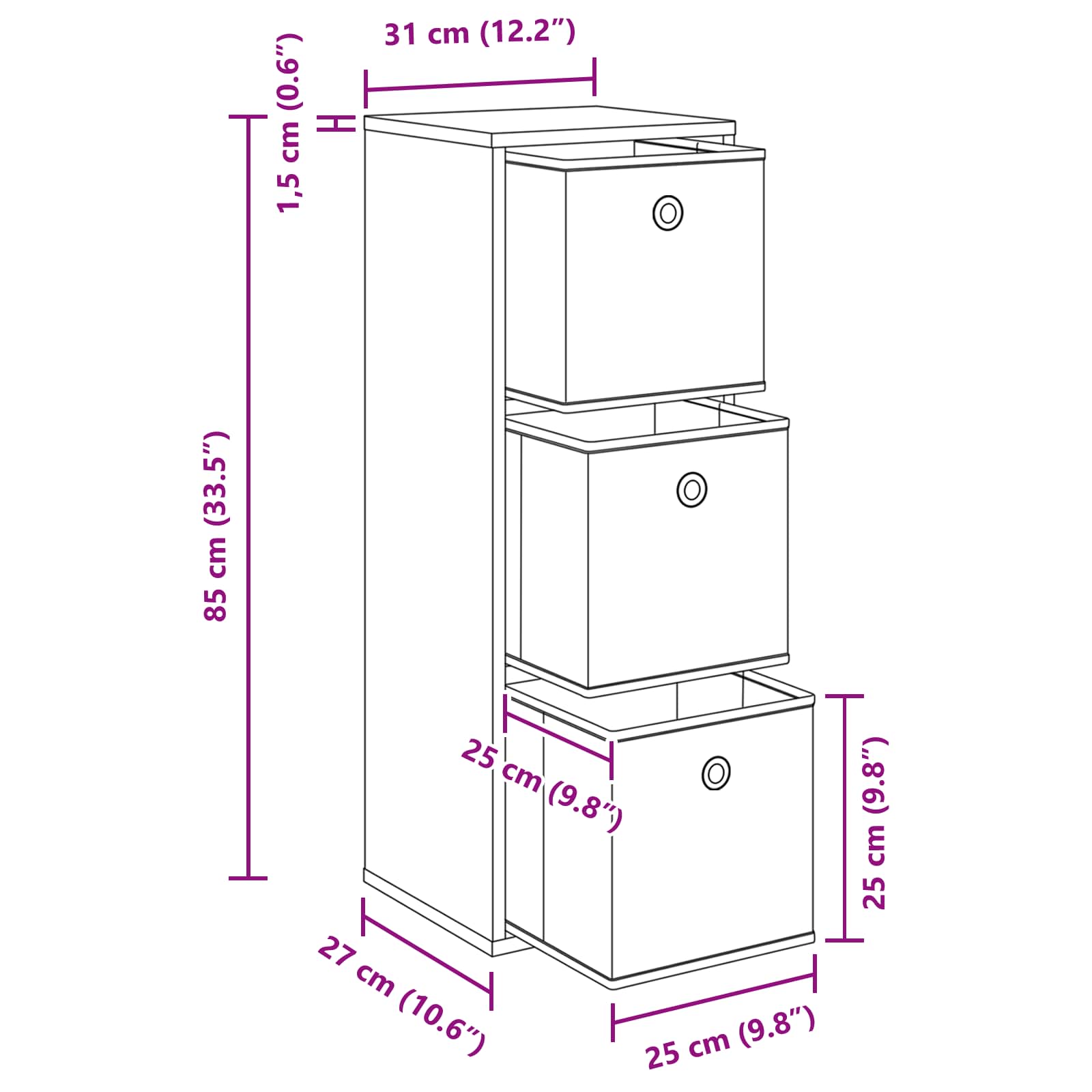 - Splošne dimenzije: 30,5 x 27 x 84,5 cm (Š x G x V)