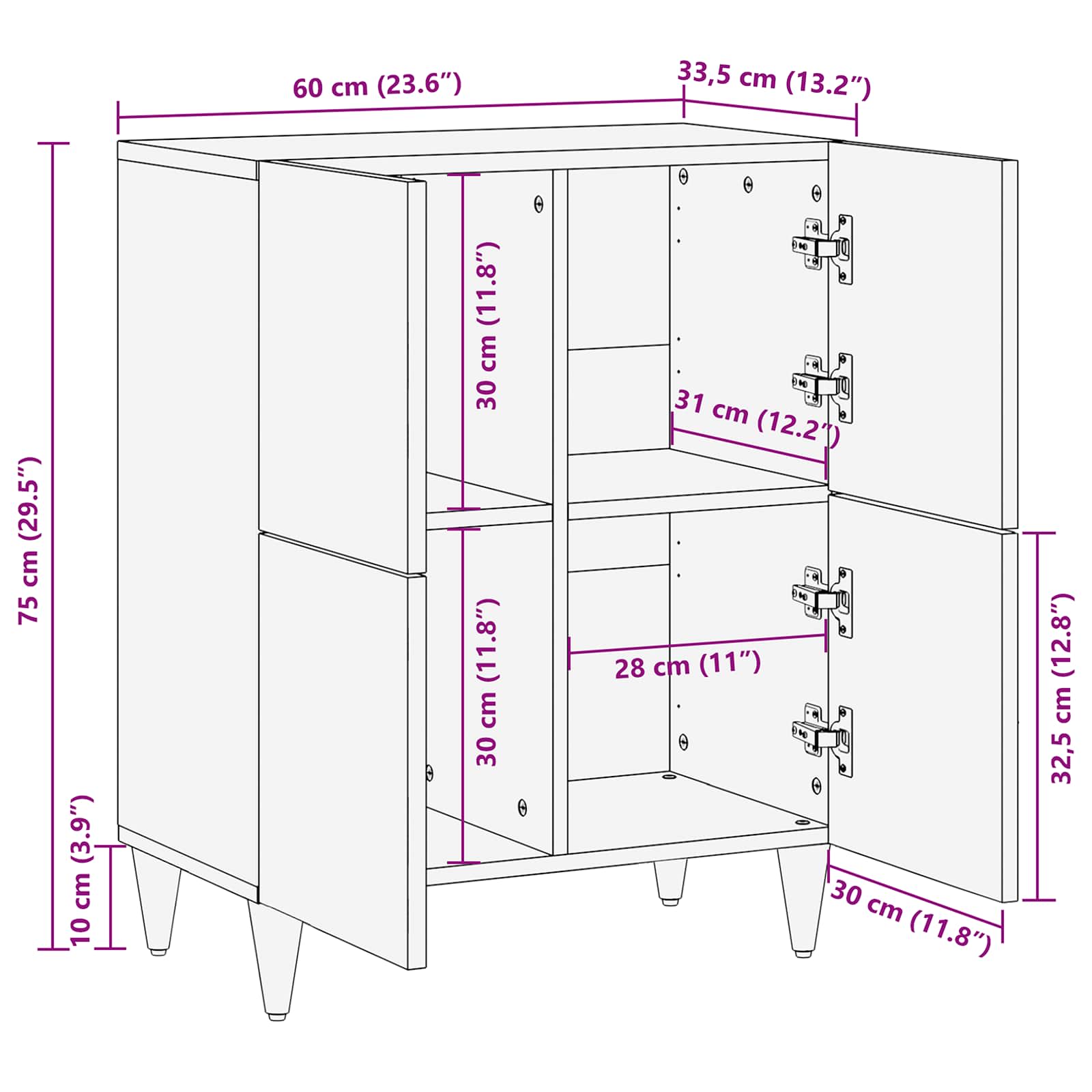 Ta elegantna stranska omarica je super dodatek za vsak prostor, njena preprosta sodobna zasnova pa je zelo privlačna. Iz trdnega mangovega lesa prinaša prijeten in topel občutek, ki se enostavno prilega različnim stilom dekoracije. Idealna je za dnevno sobo ali katerikoli prostor, kjer potrebujete več prostora za shranjevanje. Ta omarica ponuja odlično povezavo oblike in funkcije, z edinstvenim črnim in zlatim zaključkom, ki jo popestri. Njene kompaktne dimenzije so odlične za majhne ali prostorne prostore, saj ponuja praktične rešitve shranjevanja in hkrati izboljšuje estetiko vašega doma. Trden mangov les: Stranska omarica je narejena iz trdnega mangovega lesa, znanega po svoji trdnosti in lepi teksturi. Ta material zagotavlja dolgo življenjsko dobo, kar pomeni, da je zanesljiv dodatek za vaš dom. Naravni vzorci lesa dajejo poseben videz, ki obogati vsak prostor. Zlati akcenti: Ta kos se ponaša z elegantnimi zlatimi detajli, ki dajejo še dodatno dimenzijo, s čimer izžareva sofisticiranost. Lep zlati ton je subtilen, a izstopajoč, kar dodaja kontrast bogatim lesnim tonom. To poskrbi za privlačnost omarice, ki se enostavno uskladi z raznolikimi barvami in slogi. Kompaktna velikost: Dimenzije 60 x 33,5 x 75 cm nudijo veliko shranjevanja brez prevzemanja preveč prostora. Njene proporcionalne mere se prilegajo različnim velikostim prostorov, kar jo dela zelo prilagodljivo za ozke urbane prostore ali dodaja funkcionalnost večjim prostorom. Z optimizacijo prostora prispeva k urejenemu in organiziranemu okolju. Moderni estetski koncept: S čistimi linijami in minimalizmom, ta omarica predstavlja princip modernega sloga. Njena preprosta silhueta ji omogoča, da deluje kot funkcionalen element, ki nikoli ne izgubi stilske privlačnosti. Super je za domove, ki cenijo urejenost in brezskrbno lepoto. Preprosta montaža: Sestava zahteva le malo truda in je enostavna, saj je primerna za dve osebi in potrben izvijač. Zahvaljujoč jasnim navodilom je postopek hiter, kar omogoča, da zajamete osebni pridih pri ureditvi. Ugotovite, da vaša omarica ni le estetska, ampak tudi trdno zgradbena.