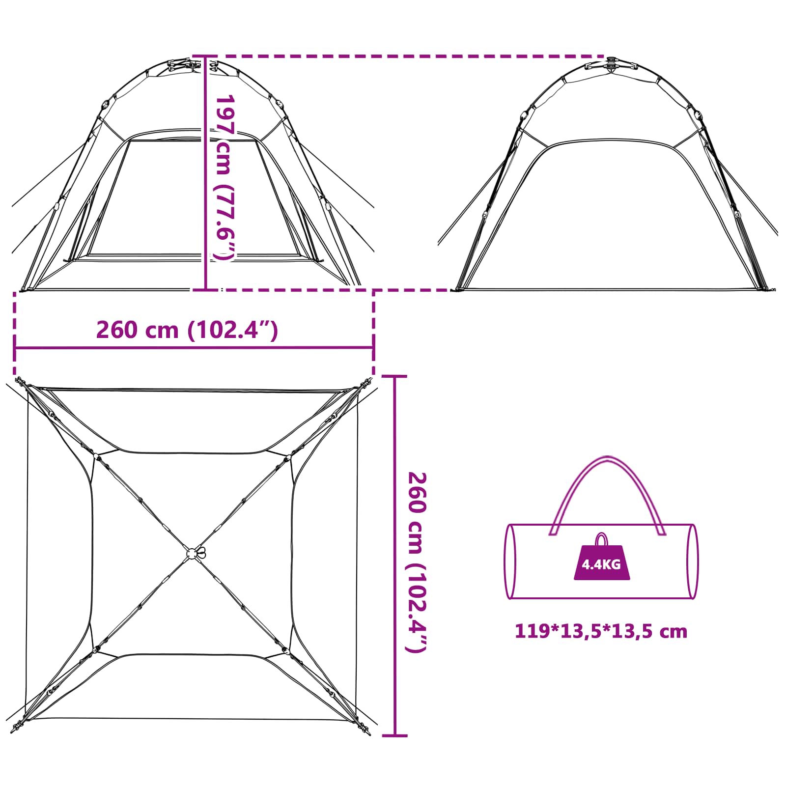 - Floor size: 260 x 260 cm