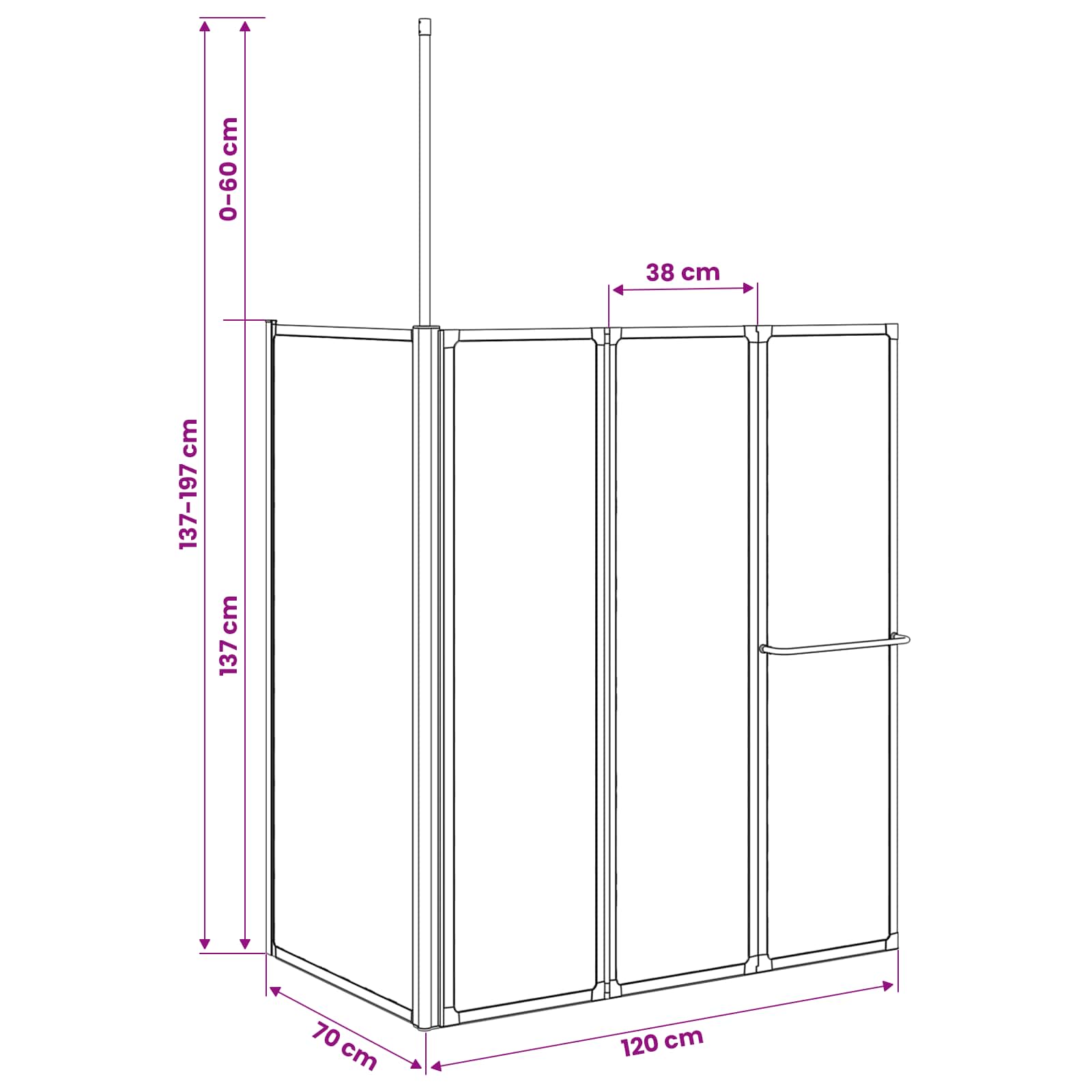 Ta moderna tuš stena za kopalnico je posebej za tiste, ki hočejo eleganten, a funkcionalen prostor. Vsebuje odlično kombinacijo stila in praktičnosti, ponuja sodoben videz s čistimi linijami in malo okrasja. Njena zložljiva funkcija poskrbi, da ne le izgleda dobro, ampak tudi varčuje prostor v manjših kopalnicah, kjer je vsak centimeter dragocen. Ko je ne potrebujete, se ekran enostavno zloži ob zid, kar je super za kopalnice s omejenim prostorom. Sodoben in eleganten dizajn: Ta tuš stena se ponaša s sodobnim dizajnom, ki ima sleek linije in diskretno eleganco. Njena minimalistična podoba se brez težav vklopi v raznolike sloge kopalnic in obogati prostor brez prevlade. Idealna za vse, ki cenijo urejen in harmoničen prostor, ki ponuja čisto in svež videz. Zložljiva funkcija za varčevanje s prostorom: Ta zasnove zložljive tuš stene omogoča enostavno shranjevanje, ko je ne potrebujete, in zagotavlja svobodo gibanja po kopalnici. Super za kopalnice z omejeno kvadraturo. Trajnost in kakovostni materiali: Narejena iz polipropilena in aluminija, ta tuš stena je zasnovana, da prenese vsakodnevno rabo, saj ohranja sodoben videz. Njena trdna konstrukcija zagotavlja dolgotrajno uporabo, kar lastnikom stanovanja prinaša mir. Enostavna sestava: Zasnovana z mislijo na udobje, tuš stenu lahko sestavi že ena oseba. Potrebni so samo osnovni orodje, kot je izvijač, kar vse skupaj poenostavi in je dostopno za lastnike. Ta funkcija omogoča enostavno nastavitev brez strokovne namestitve, kar prihrani čas in denar. Preprosto vzdrževanje: Održevanje tuš stene je enostavno: le obrišite jo z vlažno krpo, da izbrišete madeže vode in milo. Ta nizko vzdrževalni dizajn obljublja dolgotrajno podobo in pomagajo ohranjati čisto in prijetno vzdušje v kopalnici. Otroke je treba nadzorovati, da se prepreči igranje z napravo. Otroci naj ne bodo v bližini območja sestavljanja. Pozor: Pred uporabo natančno preberite navodila in jih shranite za nadaljnjo uporabo.