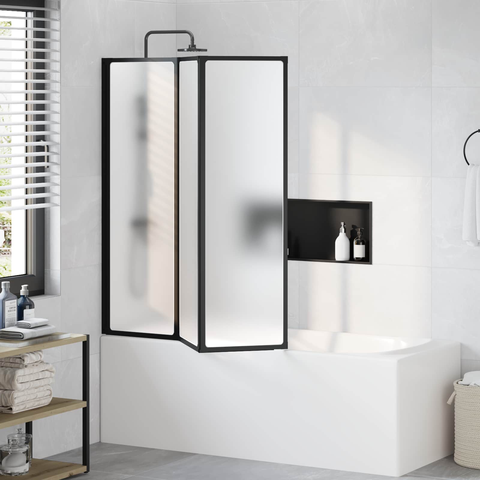 Moderna tuš zavesa je eleganten dodatek katerikoli kopalnici, saj se super zlije s sodobno dekoracijo s svojim preprostim in funkcionalnim dizajnom. Njene zložljive plošče imajo zamrznjeno površino, kar zagotavlja zasebnost, medtem ko se brez težav vključijo v različne sloge kopalnic. Vzdržljivi materiali: Ta tuš zavesa z aluminijastim okvirjem in trdnimi polipropilenskimi ploščami je zasnovana, da zdrži. Vodoodporni materiali zagotavljajo lep videz tudi v vlažnih kopalnicah, kar je super za vsakodnevno uporabo. Prostor varčne zložljive plošče: S svojo zložljivo zasnovo se lahko plošče prilagodijo, ko jih potrebujete, in se kompaktnost zložijo, ko jih ne potrebujete. To je idealno za manjše kopalnice in omogoča boljši izkoriščen prostor, kar ga dela super izbira za tiste, ki rabi shranjevanje. Univerzalne možnosti namestitve: Ta tuš zavesa omogoča namestitev na levo ali desno stran, kar jo prilagaja različnim potrebam in postavitvam. Z brezhibno integracijo se ujema z vsakim stilom kopalnice. Učinkovita preprečitev puščanja: Gumijasta tesnila na dnu učinkovito preprečujejo prehajanje vode na tla, kar je super za ohranjanje čiste kopalnice in zmanjšanje tveganja za zdrs. Ta pozornost do detajlov daje odlična izkušnjo tuširanja. Nega in vzdrževanje: Enostavna za čiščenje, tuš zavesa ohranja svoj mat videz brez večjih naporov. Redno brisanje prepreči nabiranje umazanije in poskrbi, da je dolgotrajna in vedno videti sveža. Otroke je treba nadzorovati, da se prepreči igranje z napravo. Otroci naj ne bodo v bližini območja sestavljanja. Pozor: Pred uporabo natančno preberite navodila in jih shranite za nadaljnjo uporabo.